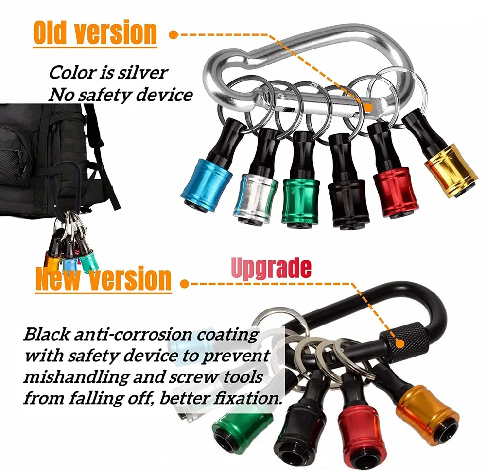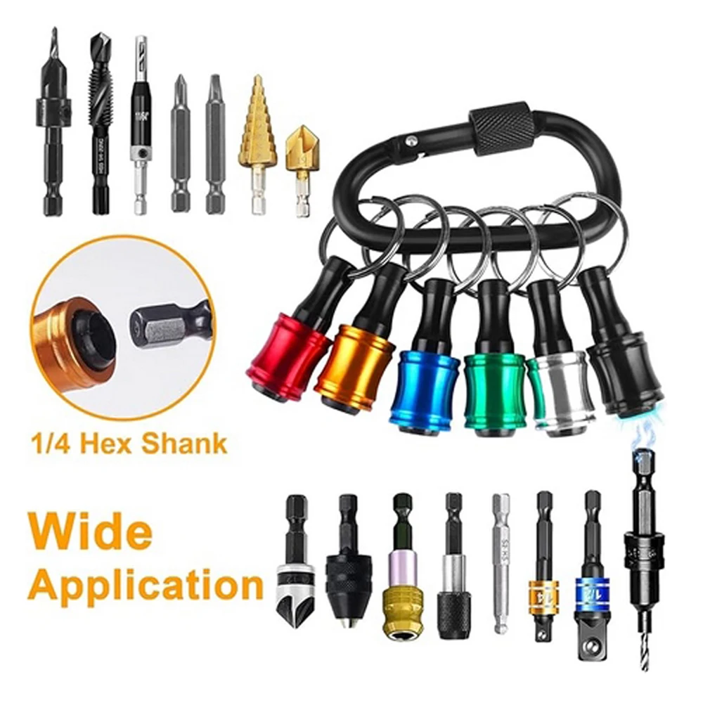 Screwdriver Bit Holder Keychain With Carabiner 1/4" Hex Shank Quick Release Extension Bar Screw Adapter Attachment Small Tool