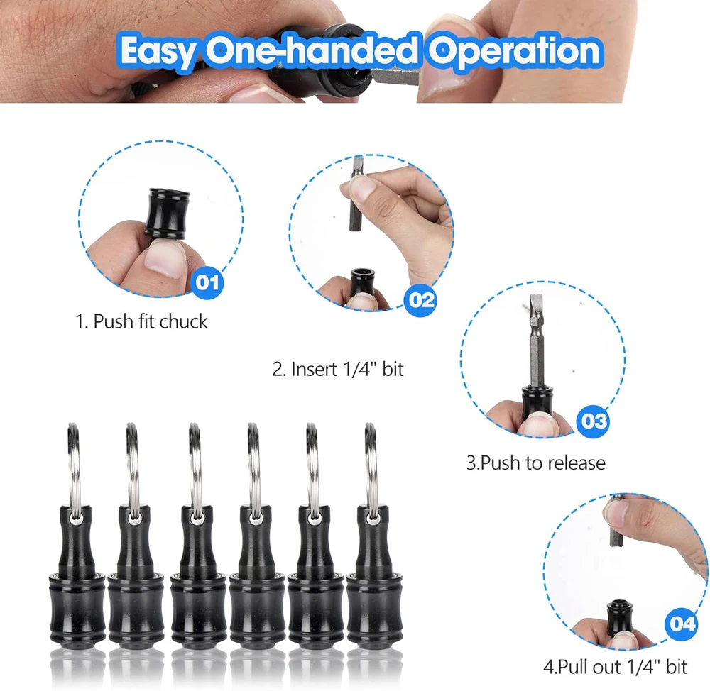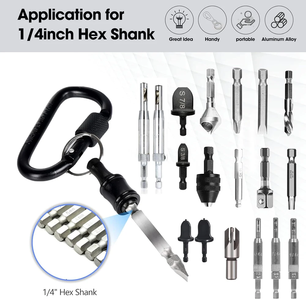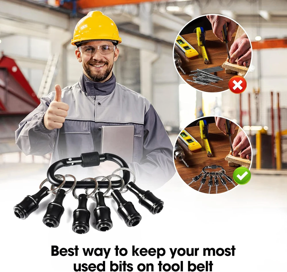 Keychain Bit Holder-- Extension Bar comes with a keychain buckle, which can be easily to install on chain buckles. Compact and portable, easy to carry around.