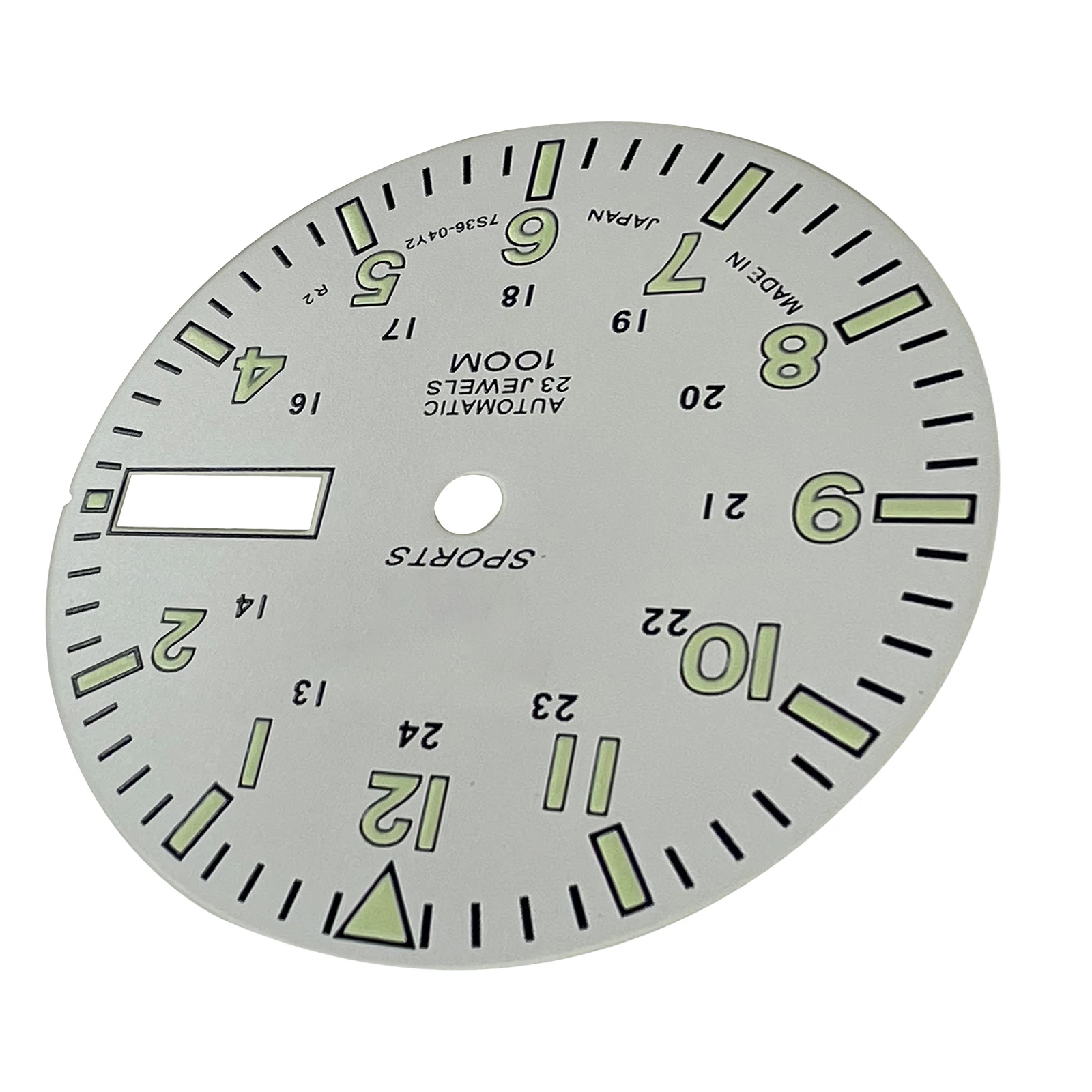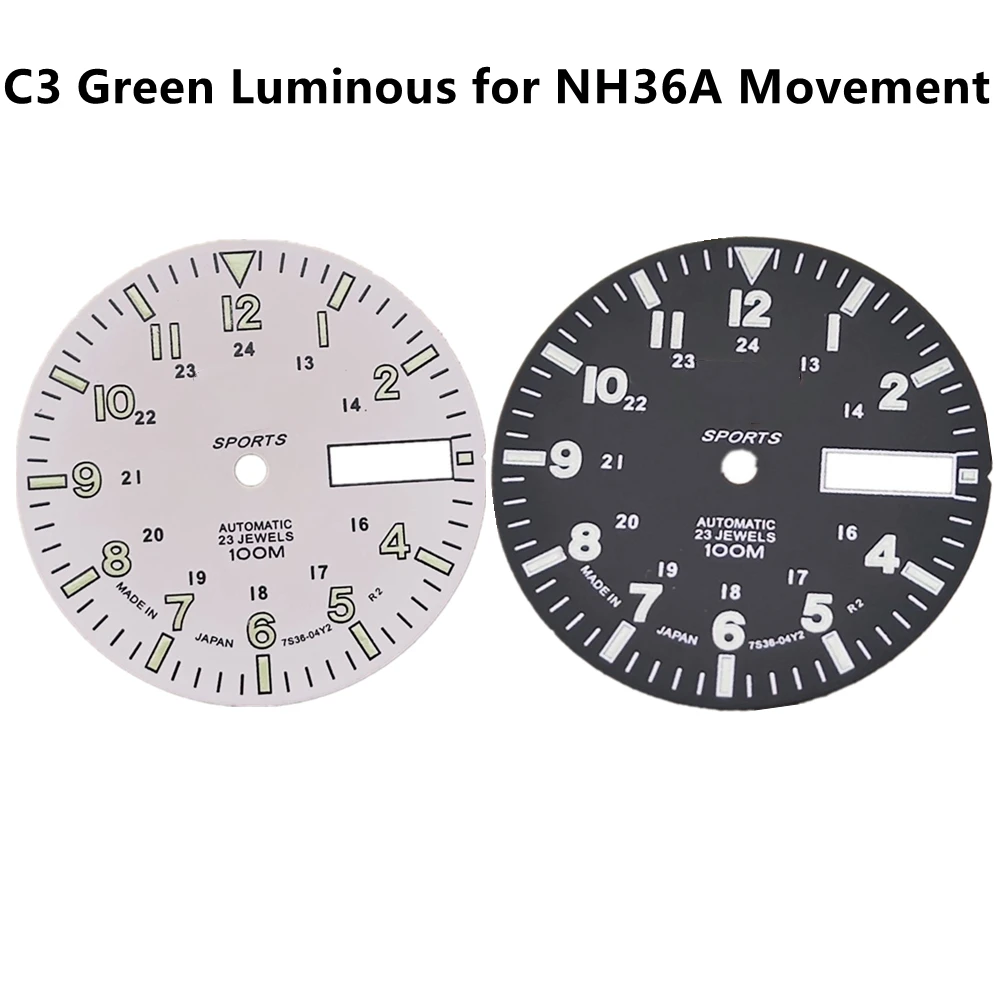 Features:Brand new and high qualityWith super strong C3 green luminous effect makes the dial glow at night or at the dark placesNice to modify and upgrade your watch by replacing this watch dialEasy to install, the size is perfect fitSuitable for NH36A watch movementSpecifications:Color: Black, WhiteMaterial: CopperDiameter: 28.5mm/1.11inchesLuminous Color: C3 GreenPackage include:1x Watch Dial