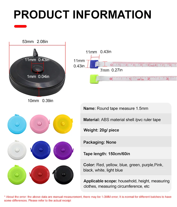 Pocket Plastic Round Tape Measure Tapeline Tape Measure Ruler Sewing Tool Mini 1.5m Gadget Ruler Band