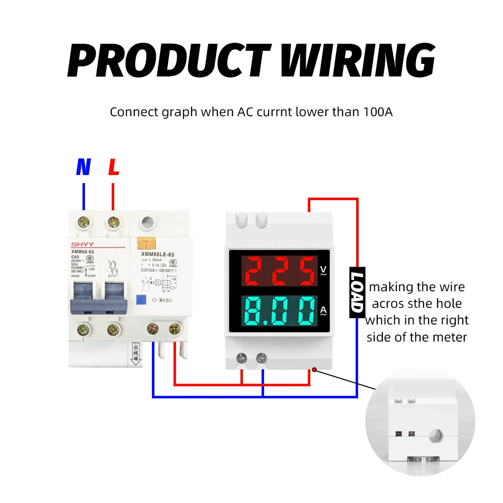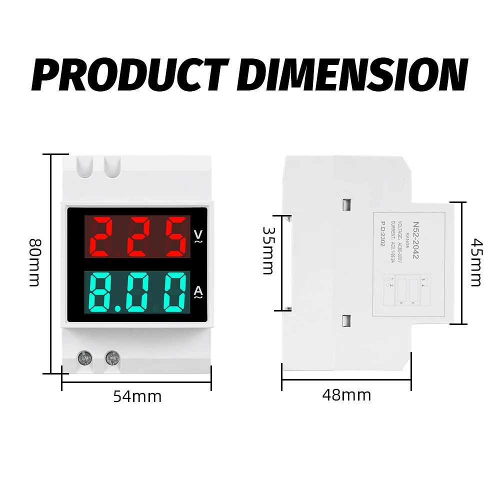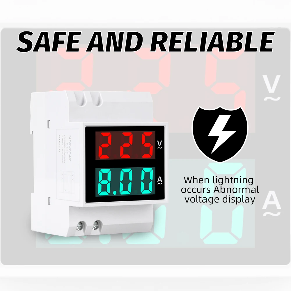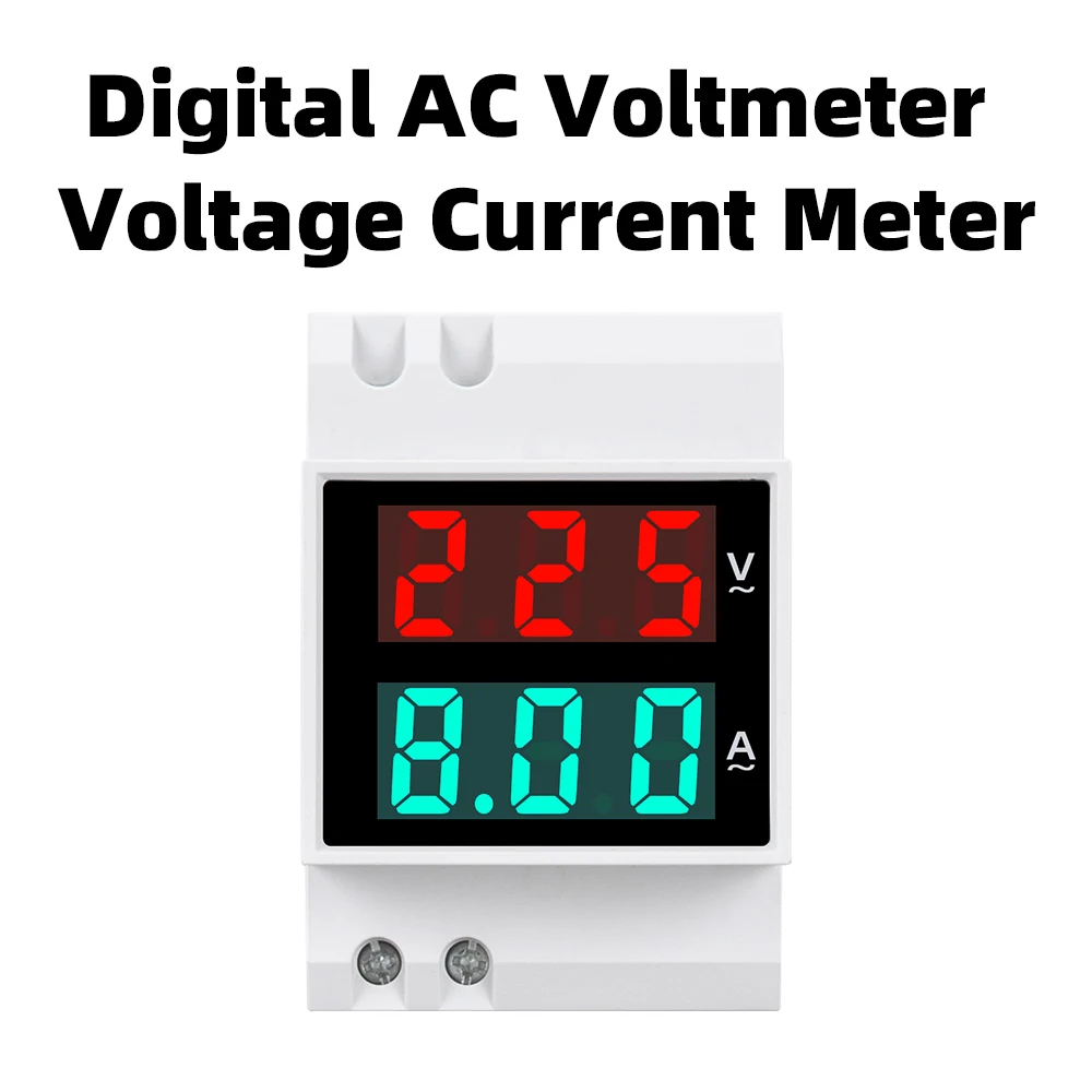 Voltmeter Ammeter DIN Rail 2 IN 1 AC 50-300V 1-63A Led Display Voltage Display Current Display High definition an High Accuracy