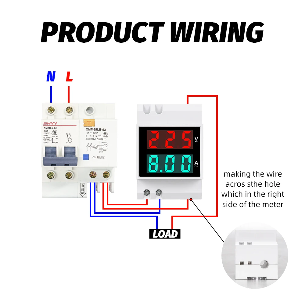 Voltmeter Ammeter DIN Rail 2 IN 1 AC 50-300V 1-63A  Led Display Voltage Display Current Display High definition an High Accuracy
