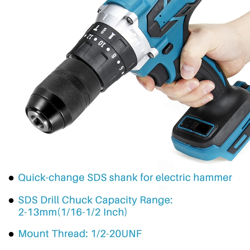 SDS Drill Chuck Capacity Range: 2-13mm(1/16-1/2 Inch); Mount Thread: 1/2-20UNF
