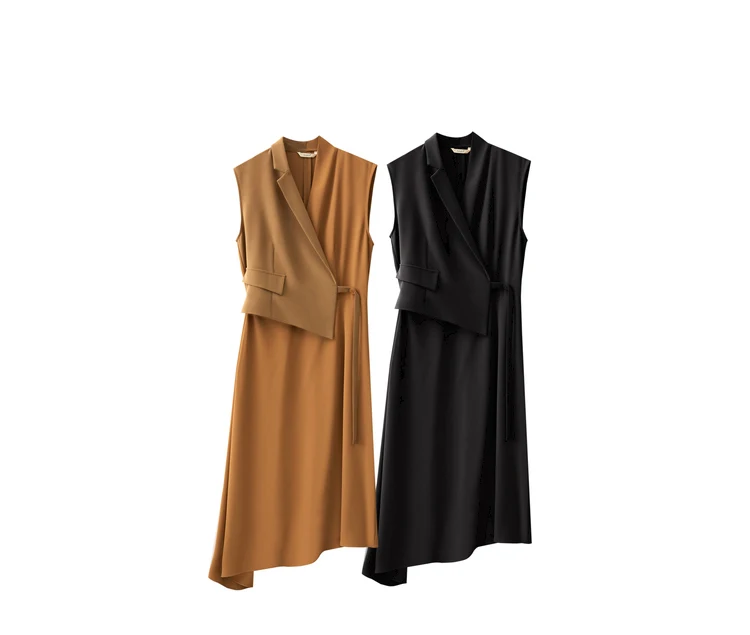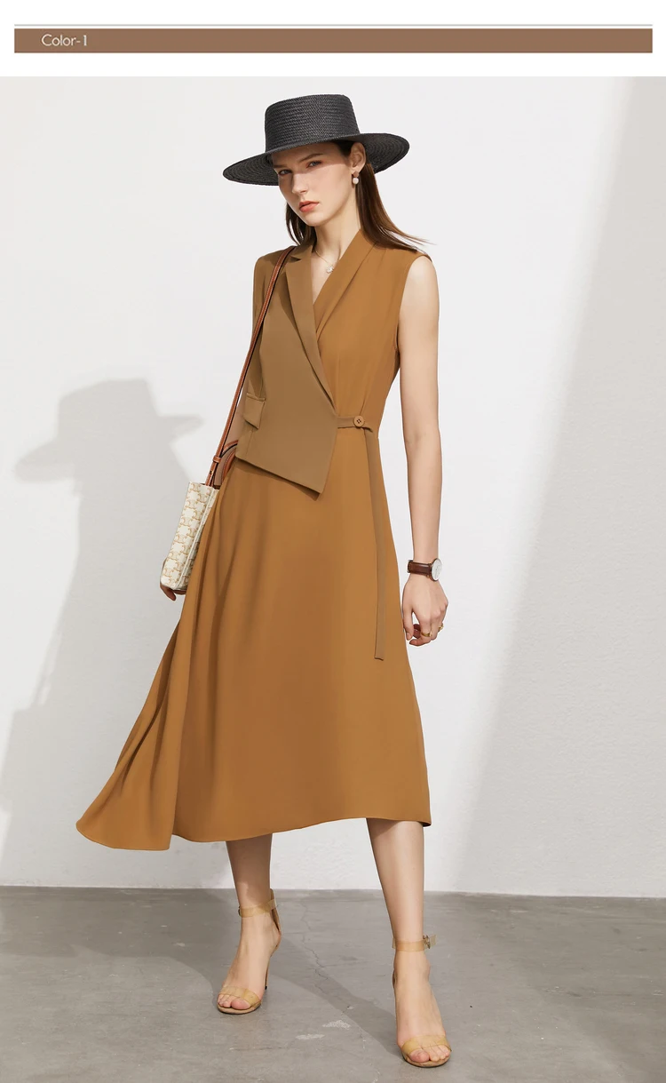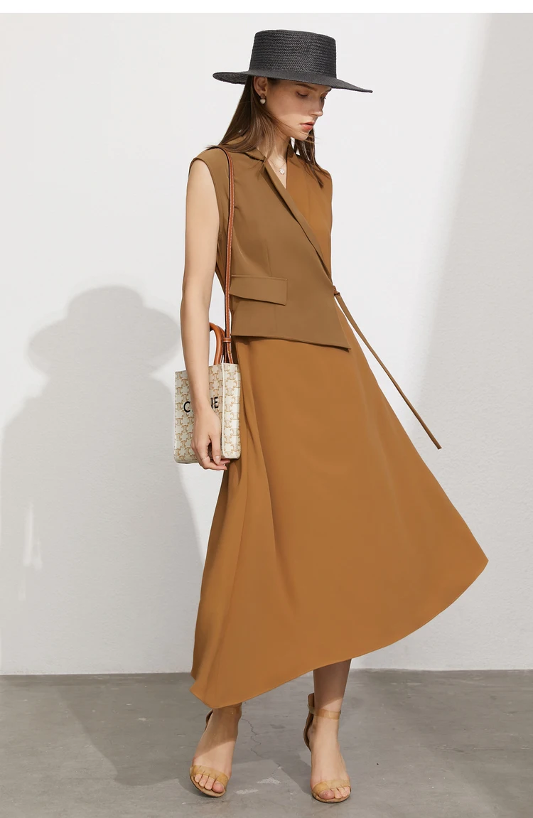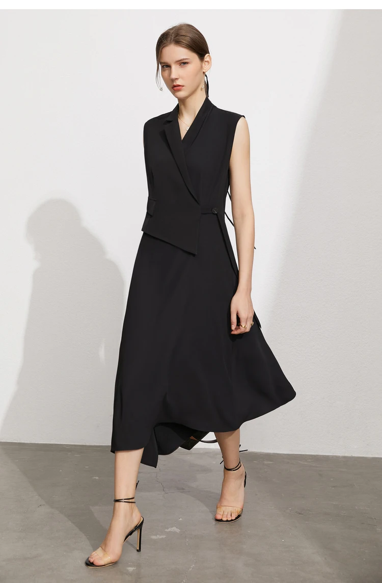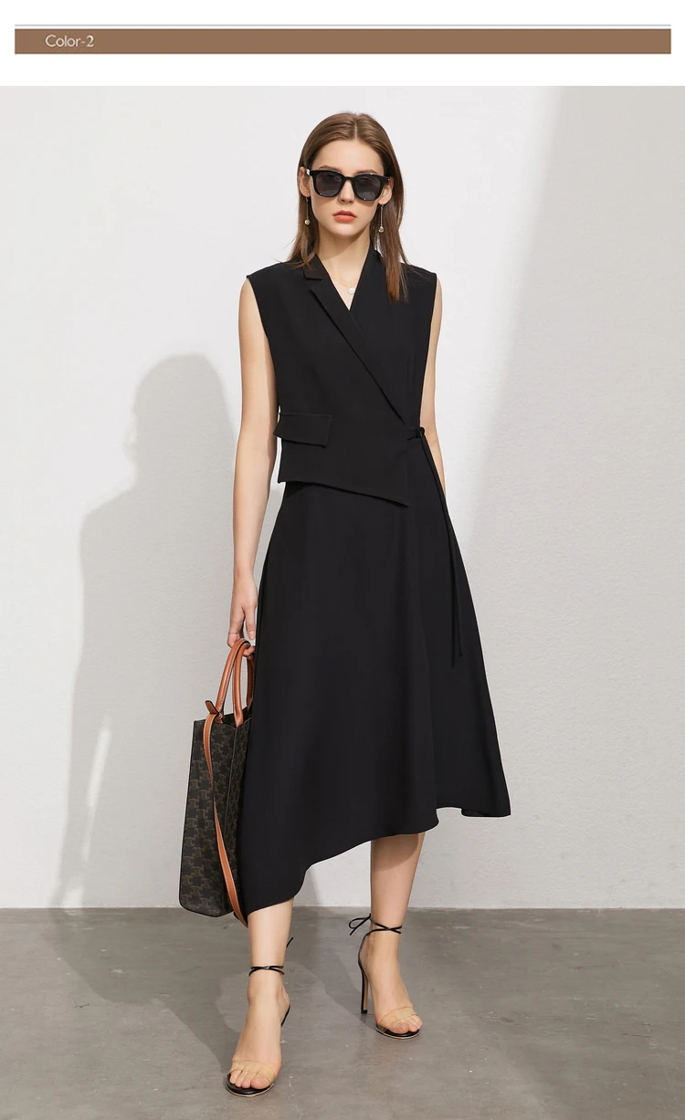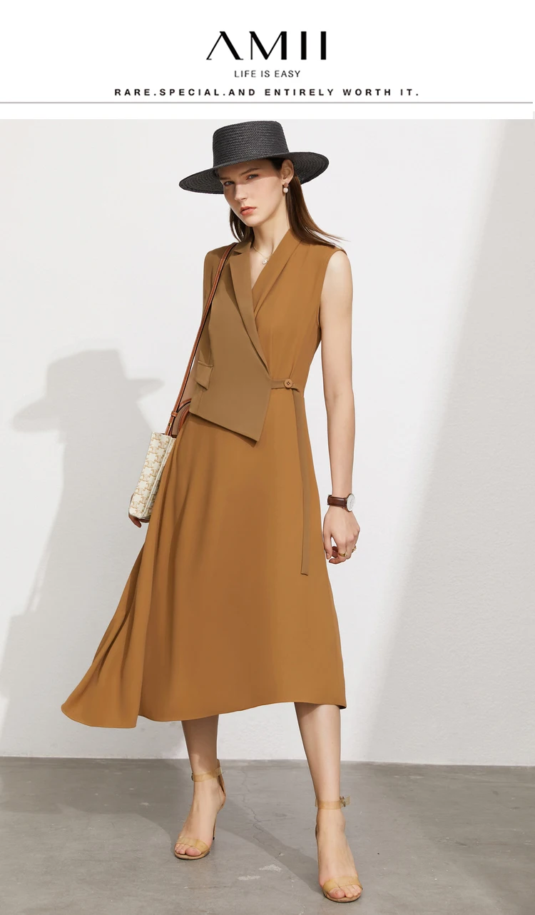 AMII Minimalism Dresses for Women 2023 Summer New Office Lady Slim Fit Lace-up V Neck Elegant Chic Black Long Vestidos 12352023
