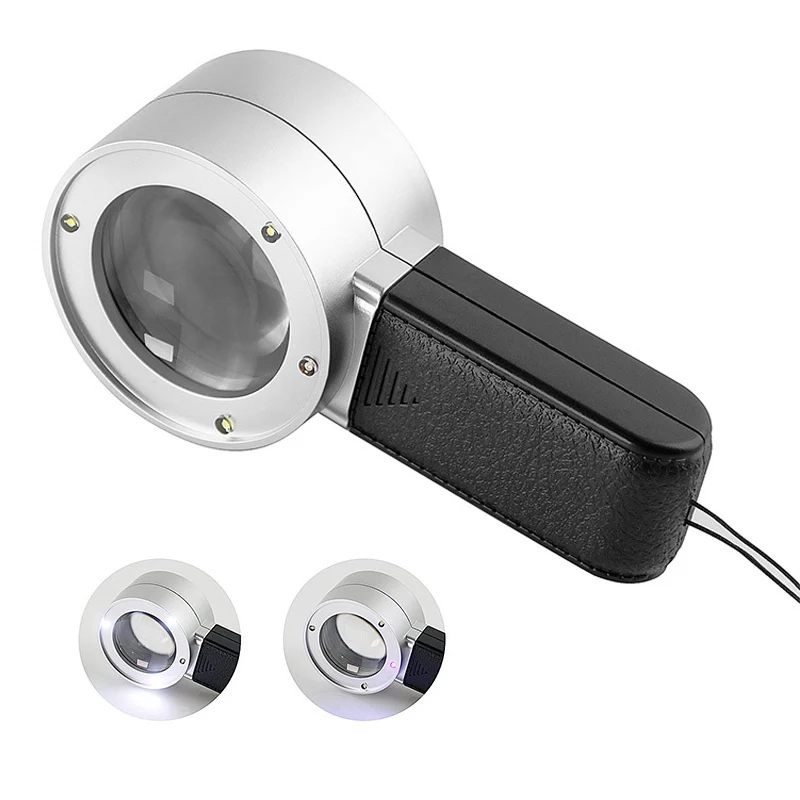 【Wide Application】 - With 3 LED lights and 1 UV lights, this pocket magnifying glass with light great for viewing fine details in coins, newspapers, magazines, maps, stamps, crafts, electronics, pill bottles, printing, letter, currency and more.