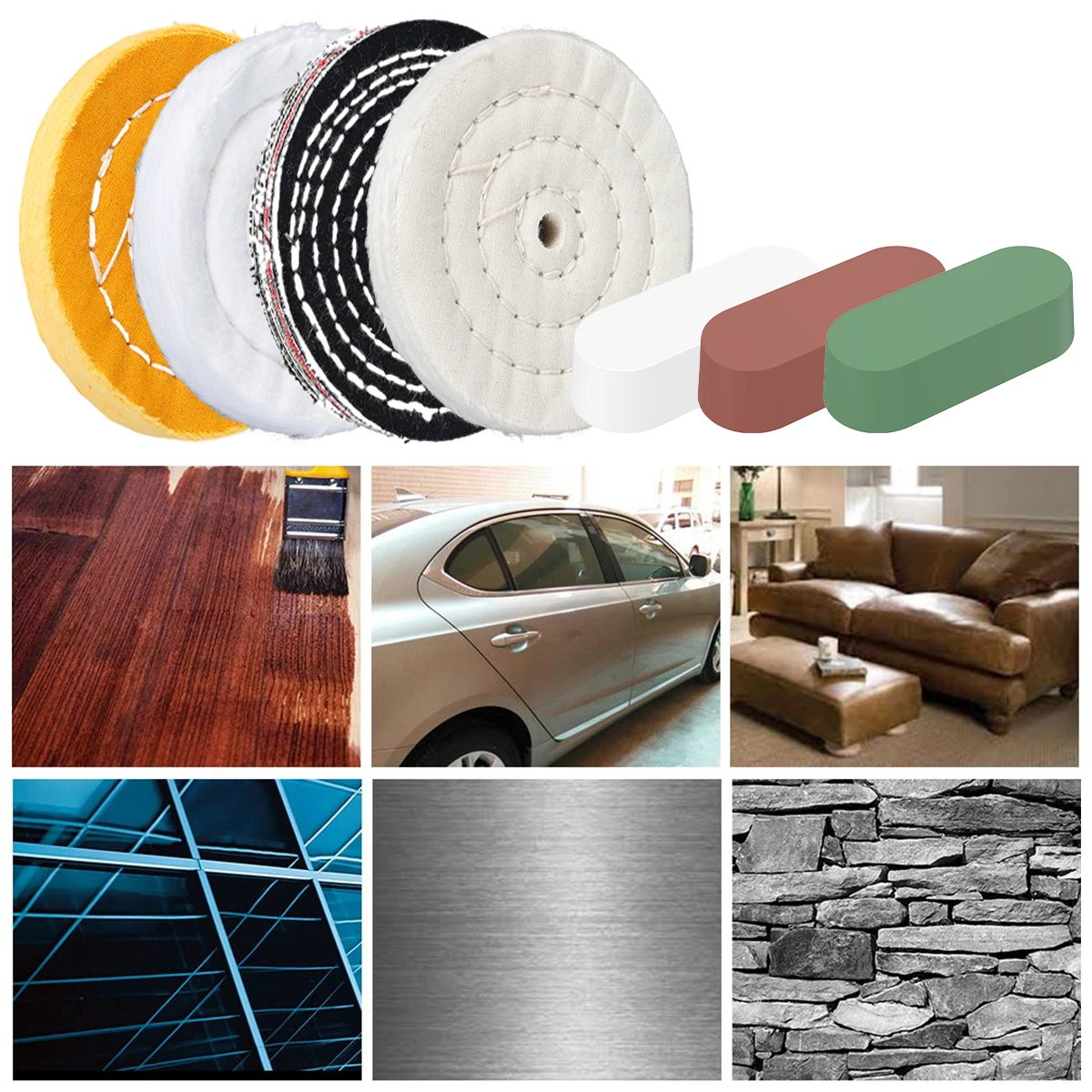 [Package Content] You will get 4pcs polishing wheels, 3pcs polish compound and 1pc shank. This complete kt can meet all your needs. The various style polishing wheels made it possible to finish your polishing work perfectly.