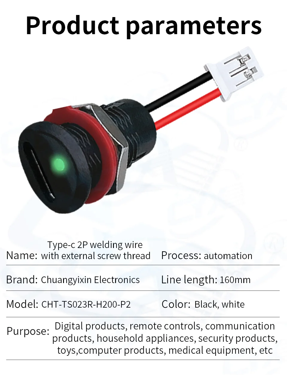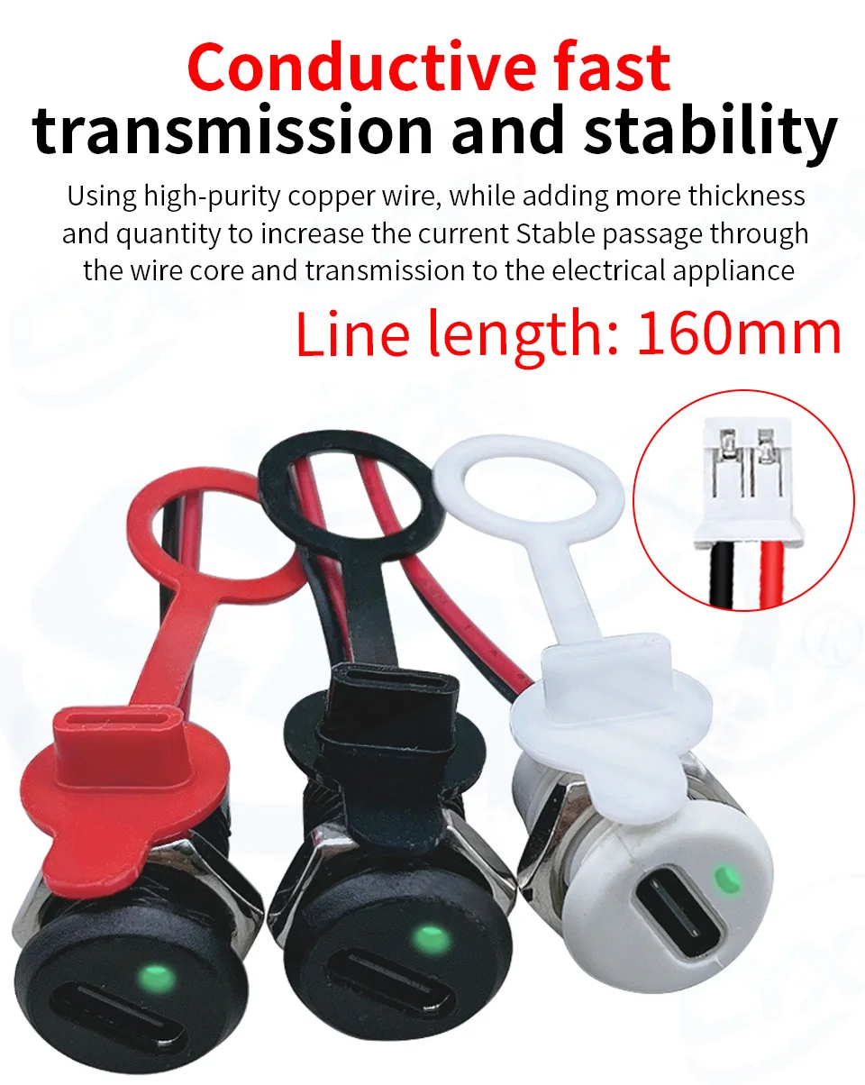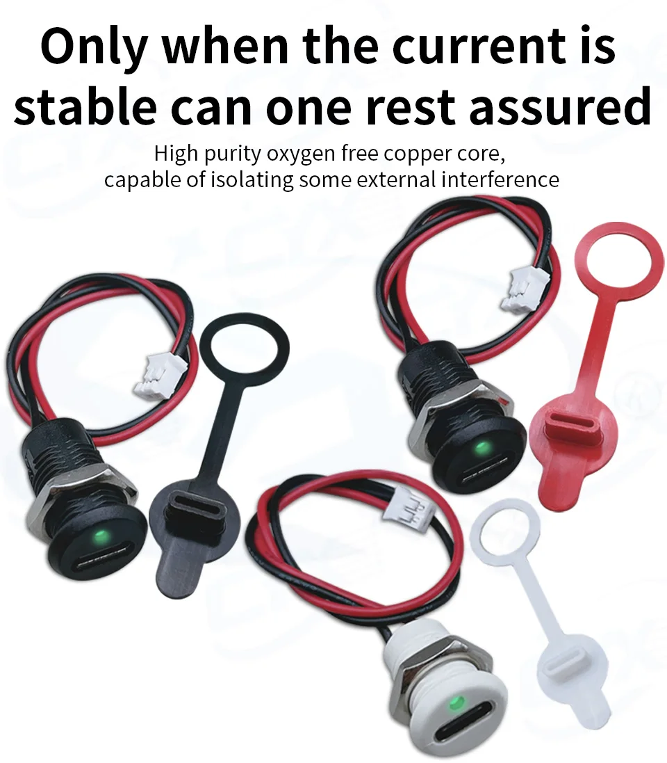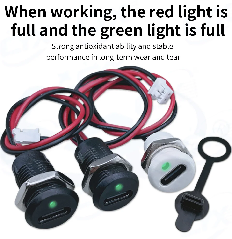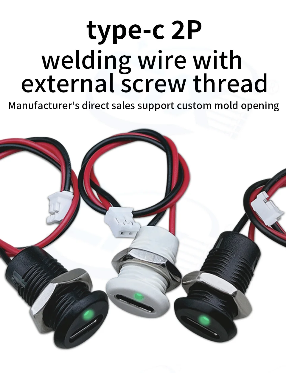2-pin LED Light USB Type-c Waterproof Connector Lock Nut Socket Female Socket Welding Charging Interface