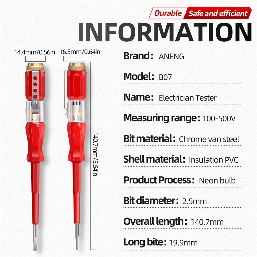 B07 Electrical Tester Pen Voltage Indicator Test Pencil Tester Screwdriver 100-500V Neon Bulb Non-contact Insulation Test Pen