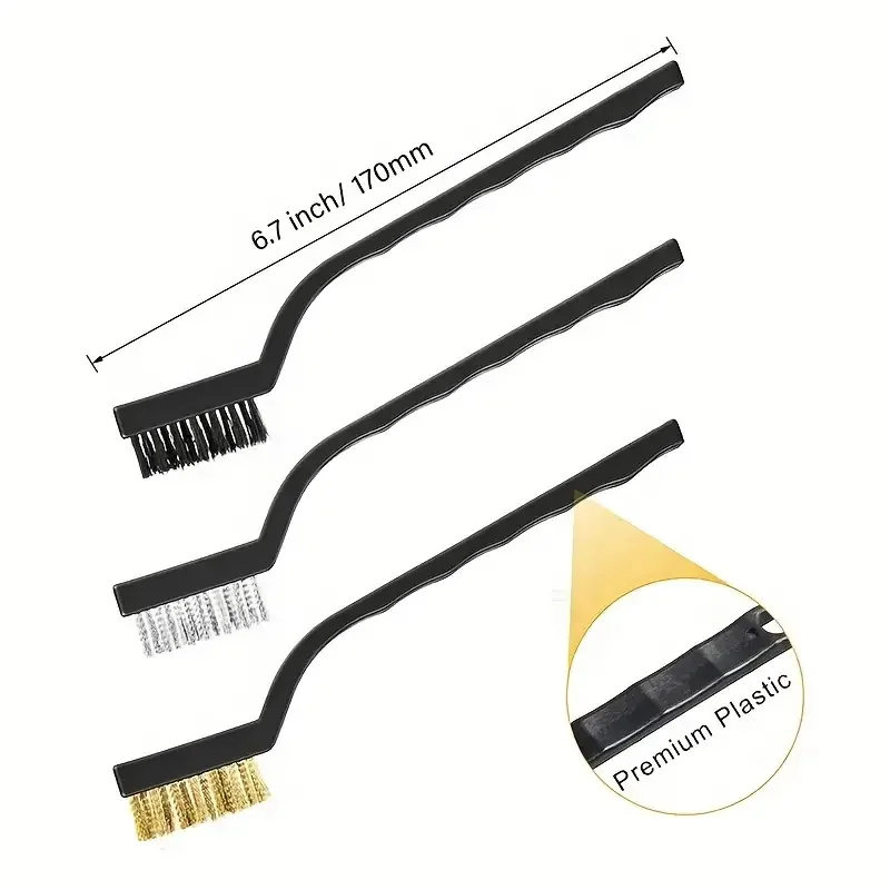 15pcs Wire Brush Set (Stainless Steel+Brass+Nylon) Curved Handle Brush Set For Cleaning, Welding Slag & Rust Removal