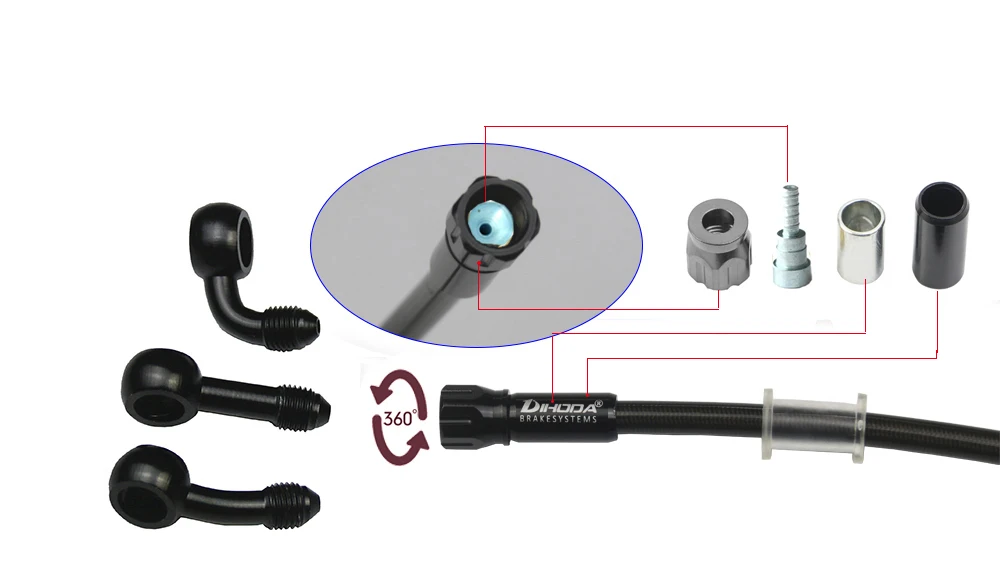 7. Banjo Dia: 10mm , 3 pcs (0°/ 28° / 90°) banjo bolts . AN3 Quick Release Accessories-Brake Line