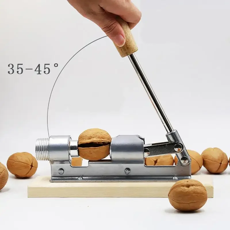 Open the handle of the walnut clamp and place the nut on the position between the handle and the knob. Adjust the limiter according to the size of the walnut or nut to keep the handle and the horizontal plane at an angle of 35-45°, which is convenient for operation and labor-saving. Fix the walnuts and press down the handle of the walnut machine evenly to easily squeeze the shells of nuts of various sizes such as walnuts, and the kernels are relatively intact.