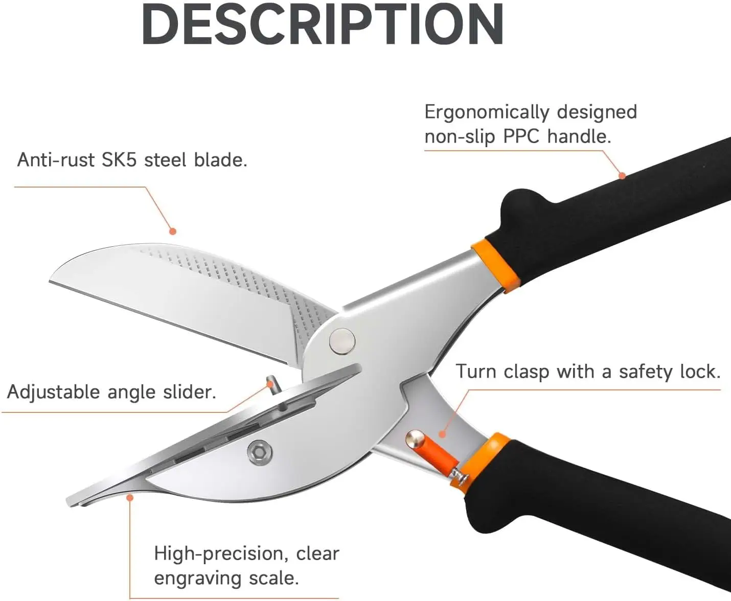 Oblique Angle Scissors, Multi-Function Scissors in the Trunk, Adjustable Angle Scissors, Suitable for Cutting Cork, Plastic