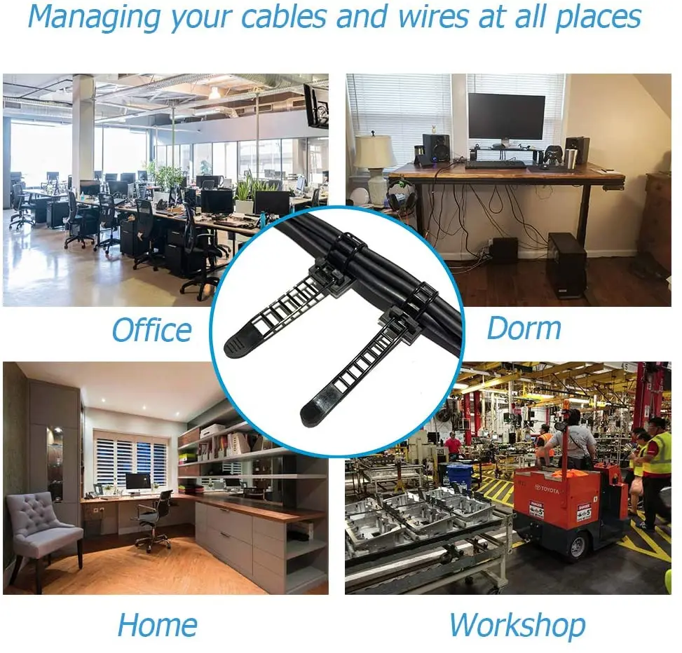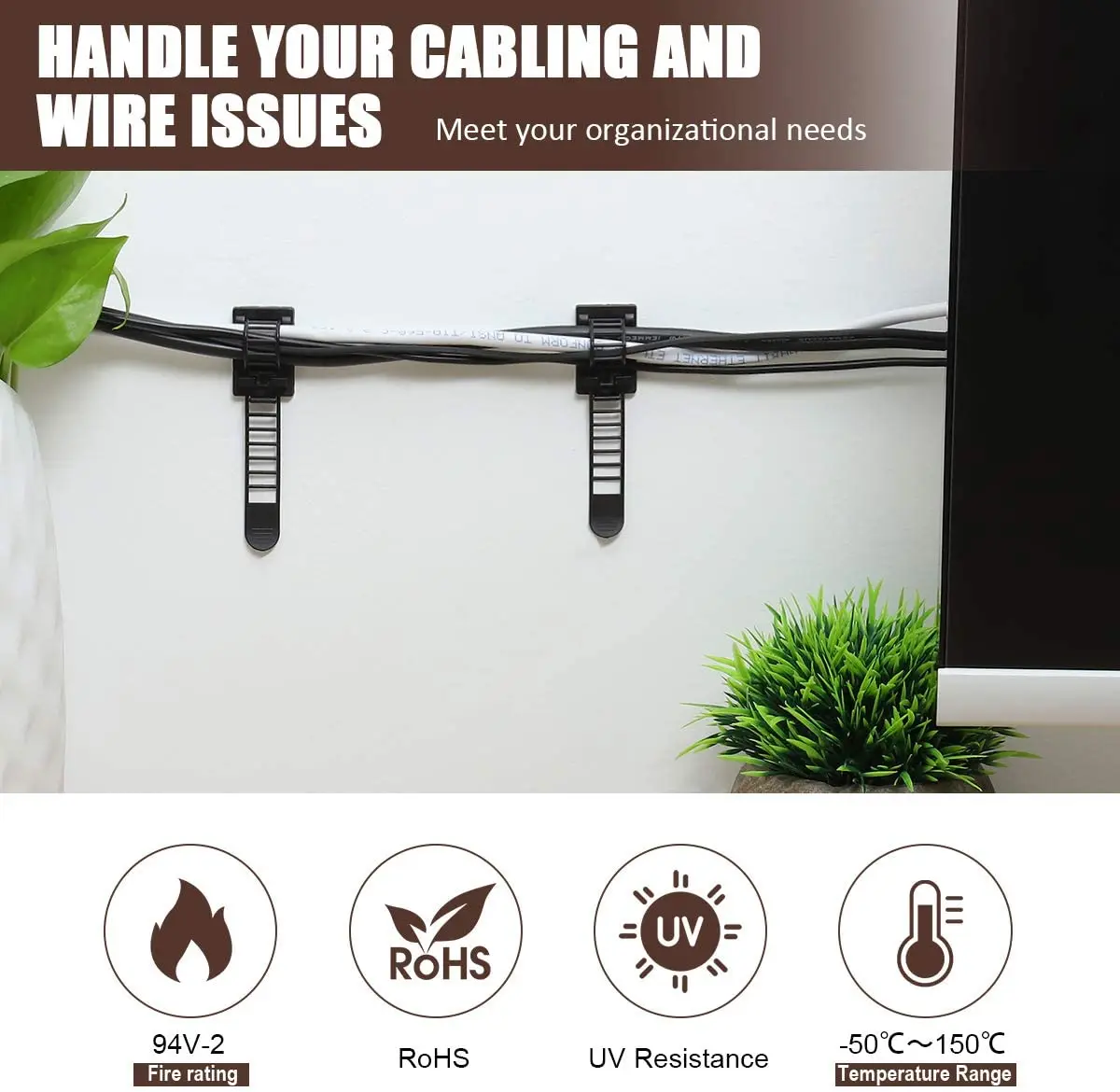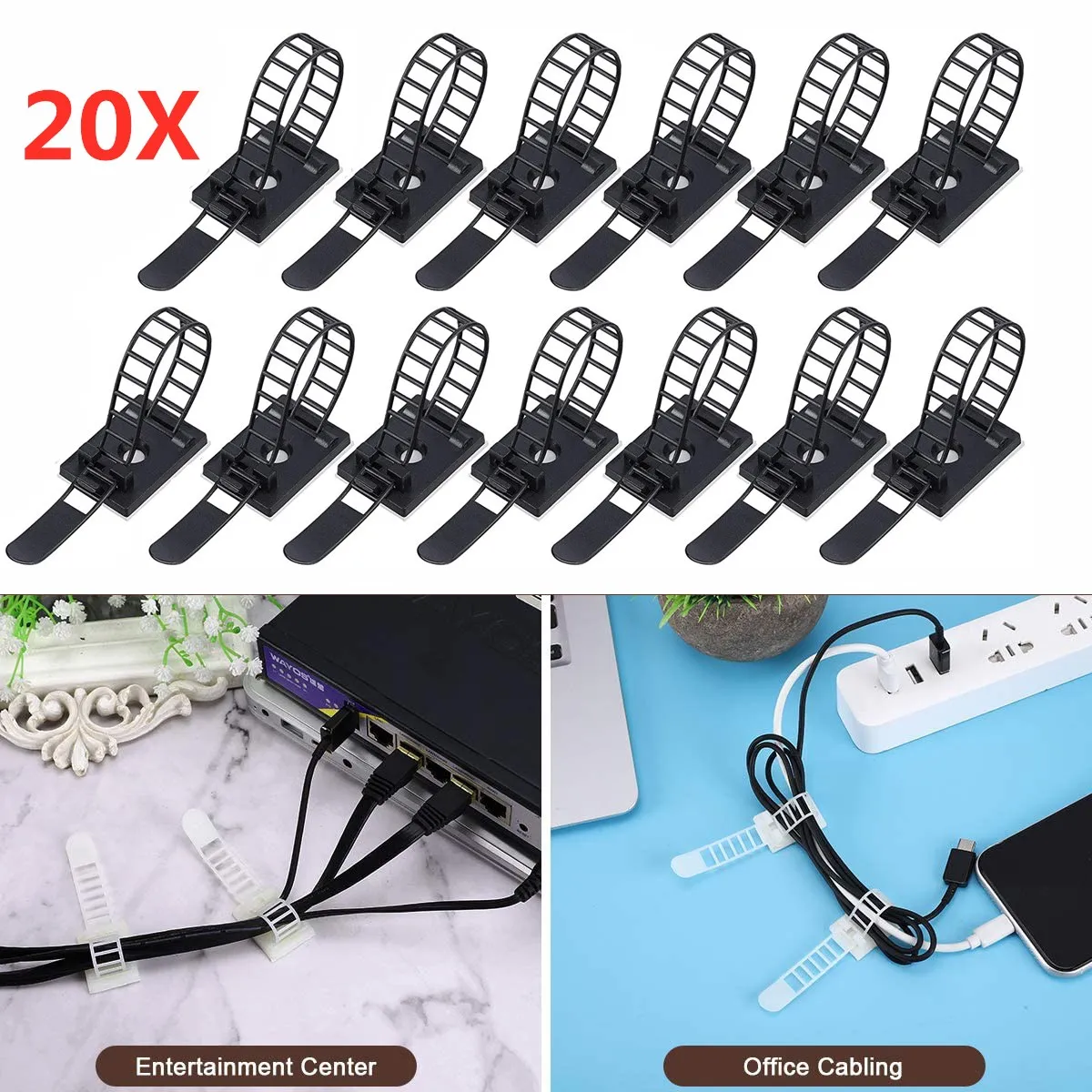 5/20PCS Adhesive Cable Organizer Clips Adjustable Nylon Cable Strap Ties Wire Clamps Cable Management For Car Wire Cord Holder