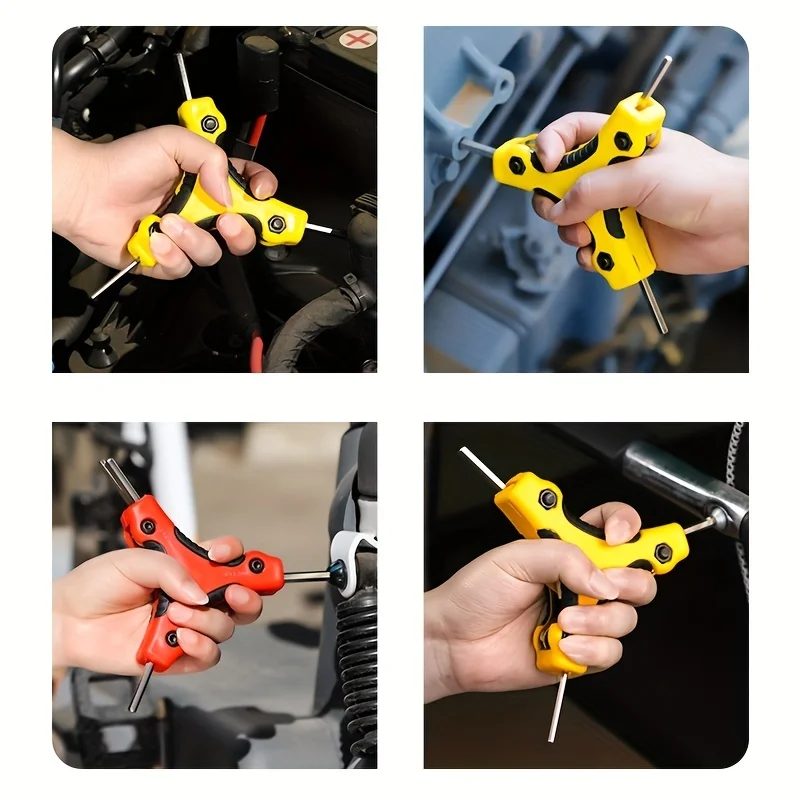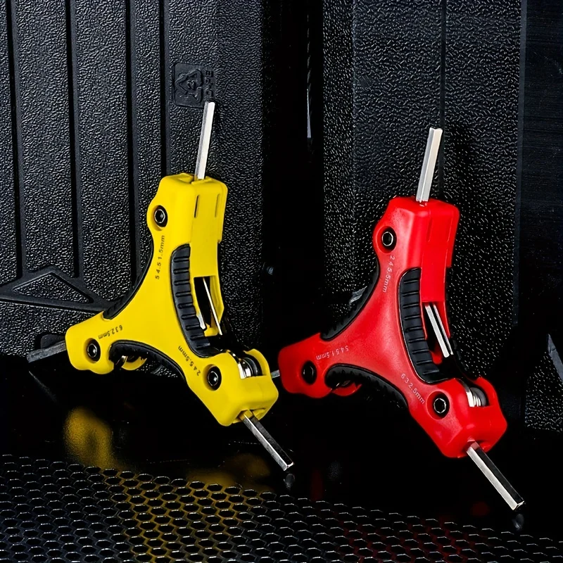 Folding Hexagonal Star Key Cr-V Steel Portable Screwdriver Tool Metric Folding Hexagonal Wrench Kit Red Yellow
