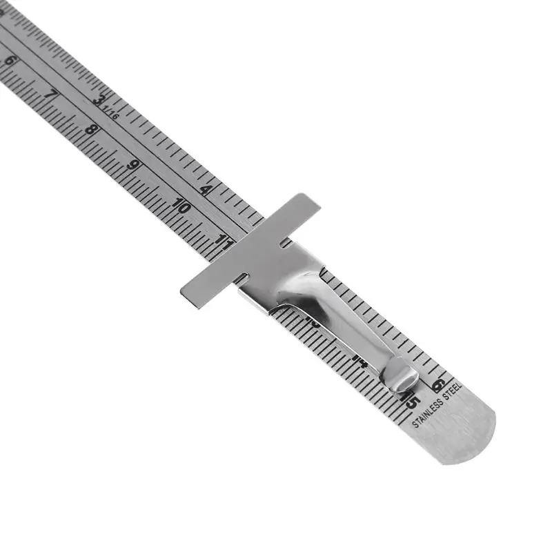 Stainless steel with etched increments in 1/16ths, 1/32nds, and mm. Small, handy and precision measuring. Can be used as depth gauge.