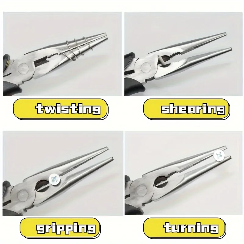 3pcs 6In Long Nose/Needle Nose/ Industrial Grade Pliers Suitable For Indoor And Outdoor Repair Work, Steel Cutting, Wire Cutting