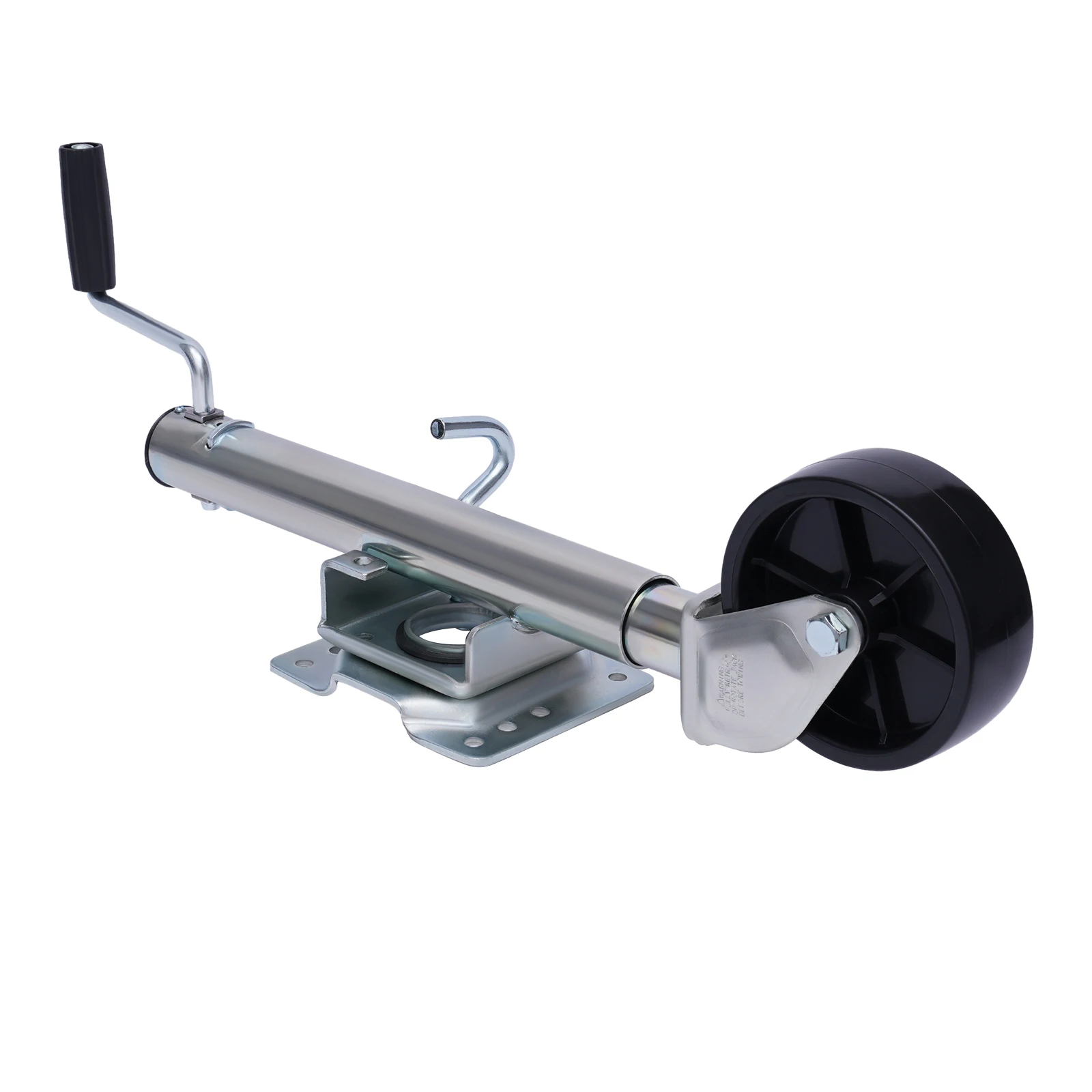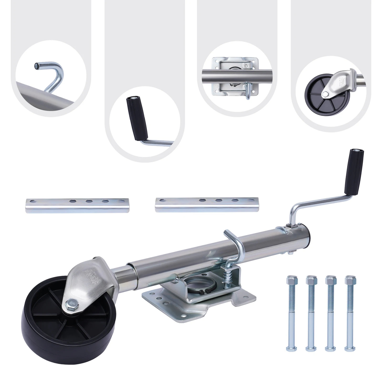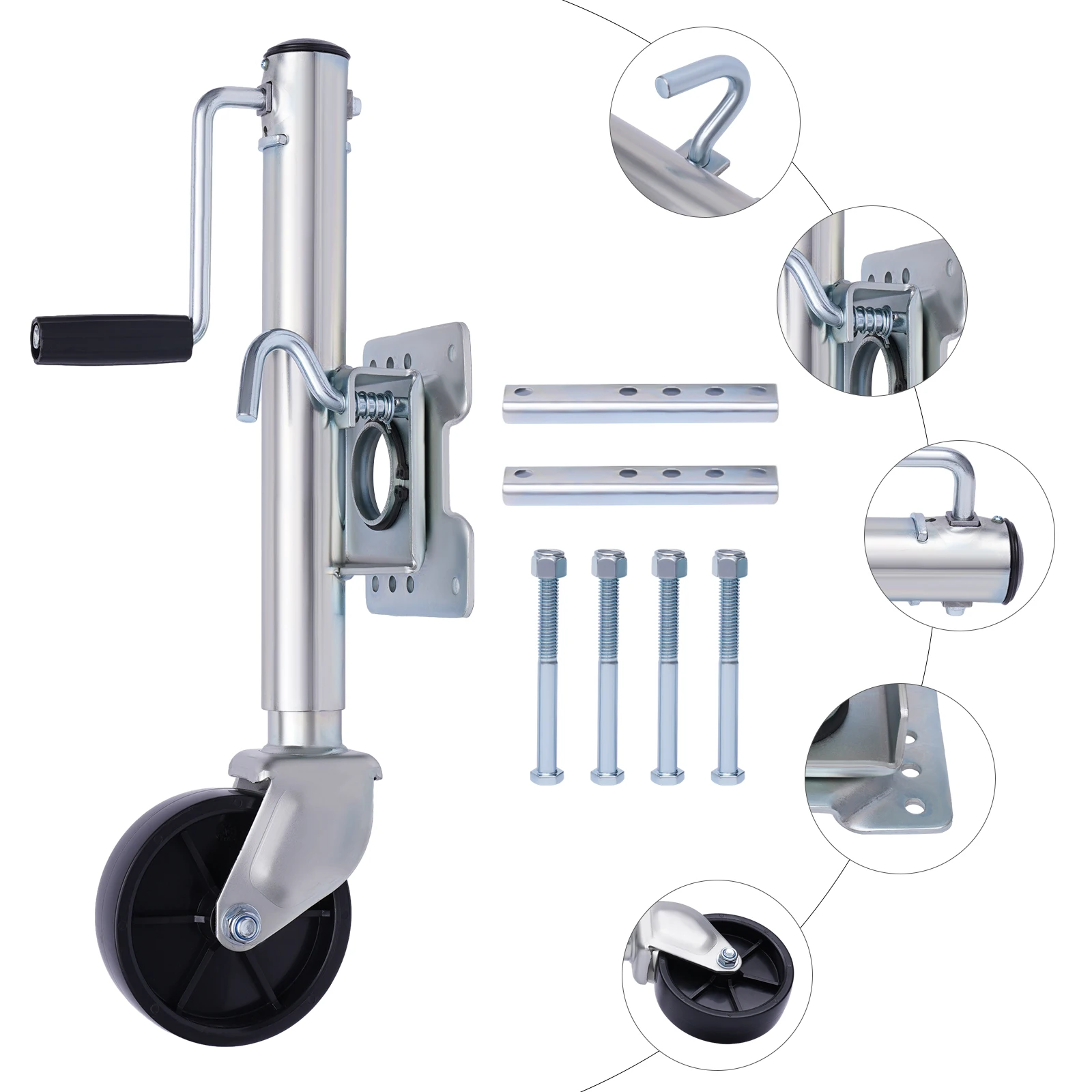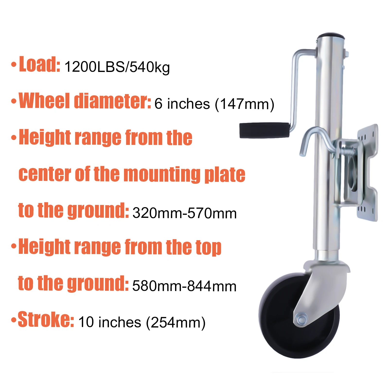 Zum Bequemen an- Und Abkuppeln Ihres Anhängers Ist Ein Stützrad Unverzichtbar. Wenn Sie Ihren Anhänger Damit Ausstatten Möchten, Ist Dieses Stützrad Eine Gute Wahl. Aus Hochwertigem Verzinktem Stahl Gefertigt, Ist Dieses Stützrad Rostfrei Und Robust Und Hat Eine Maximale Tragfähigkeit Von 1200 Lb, Wodurch Es Für Die Verwendung Mit Den Meisten Anhängern, Wohnwagen, Wohnmobilen Und Anderen Fahrzeugen Geeignet Ist. Das 200 Mm Plastik Hilft, Ihren Anhänger Leicht Zu Bewegen, Wenn Das Stützrad Angebracht Ist Das Klappsystem, Das Rad Klappt Beim Aufziehen Hoch, Um Mehr Bodenfreiheit Zu Geben.