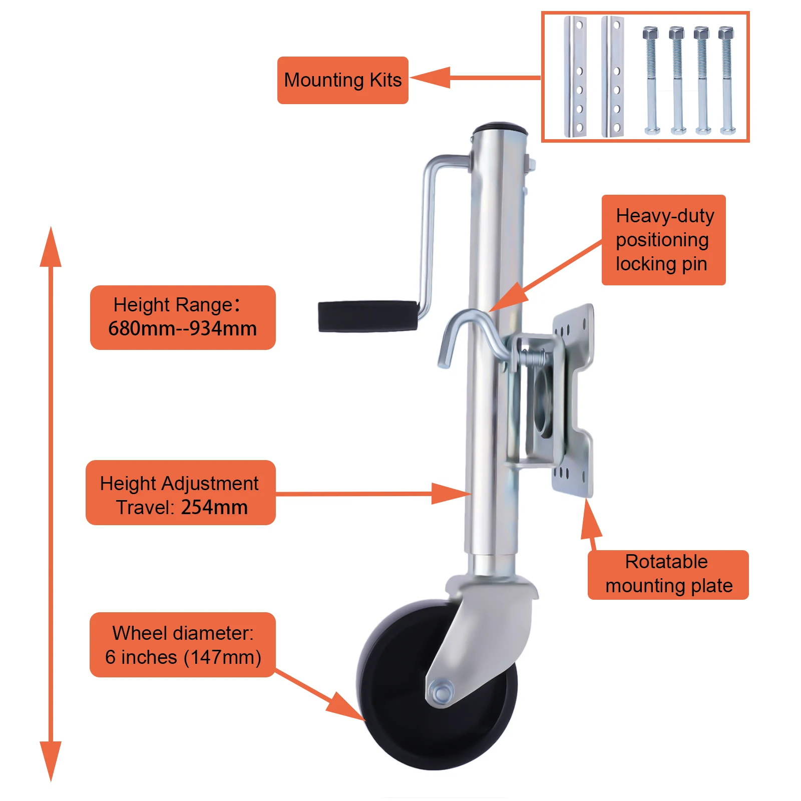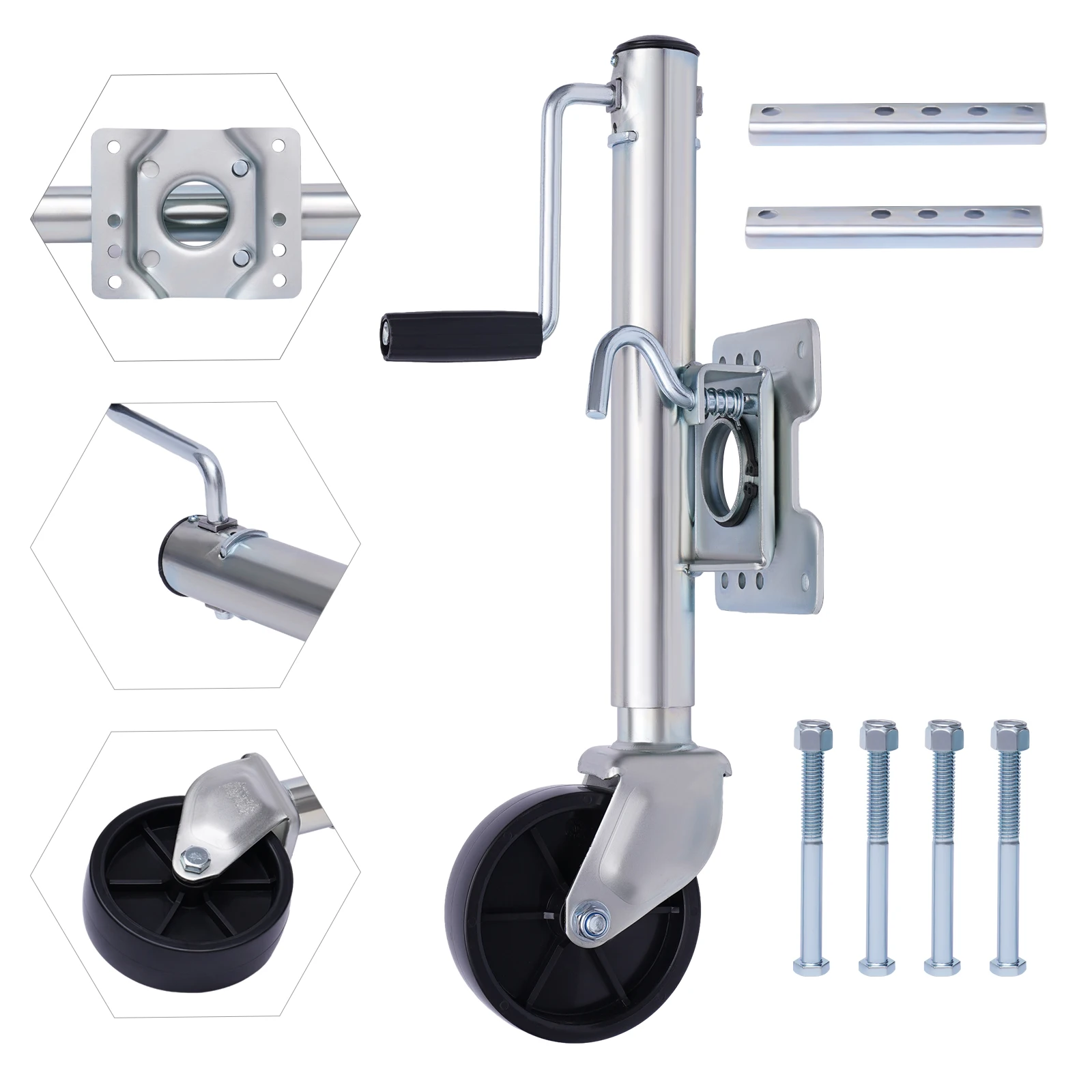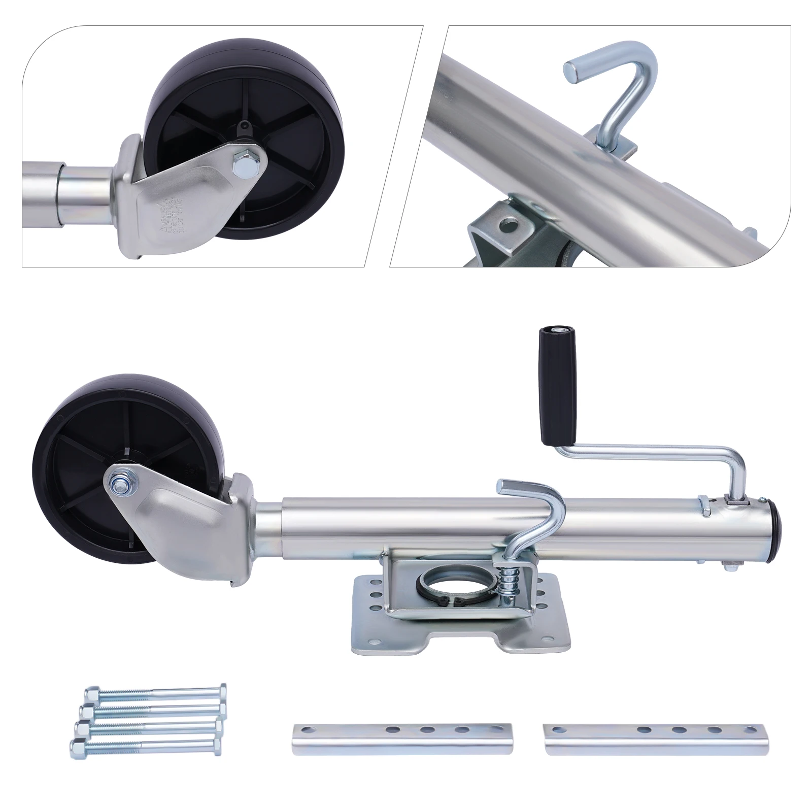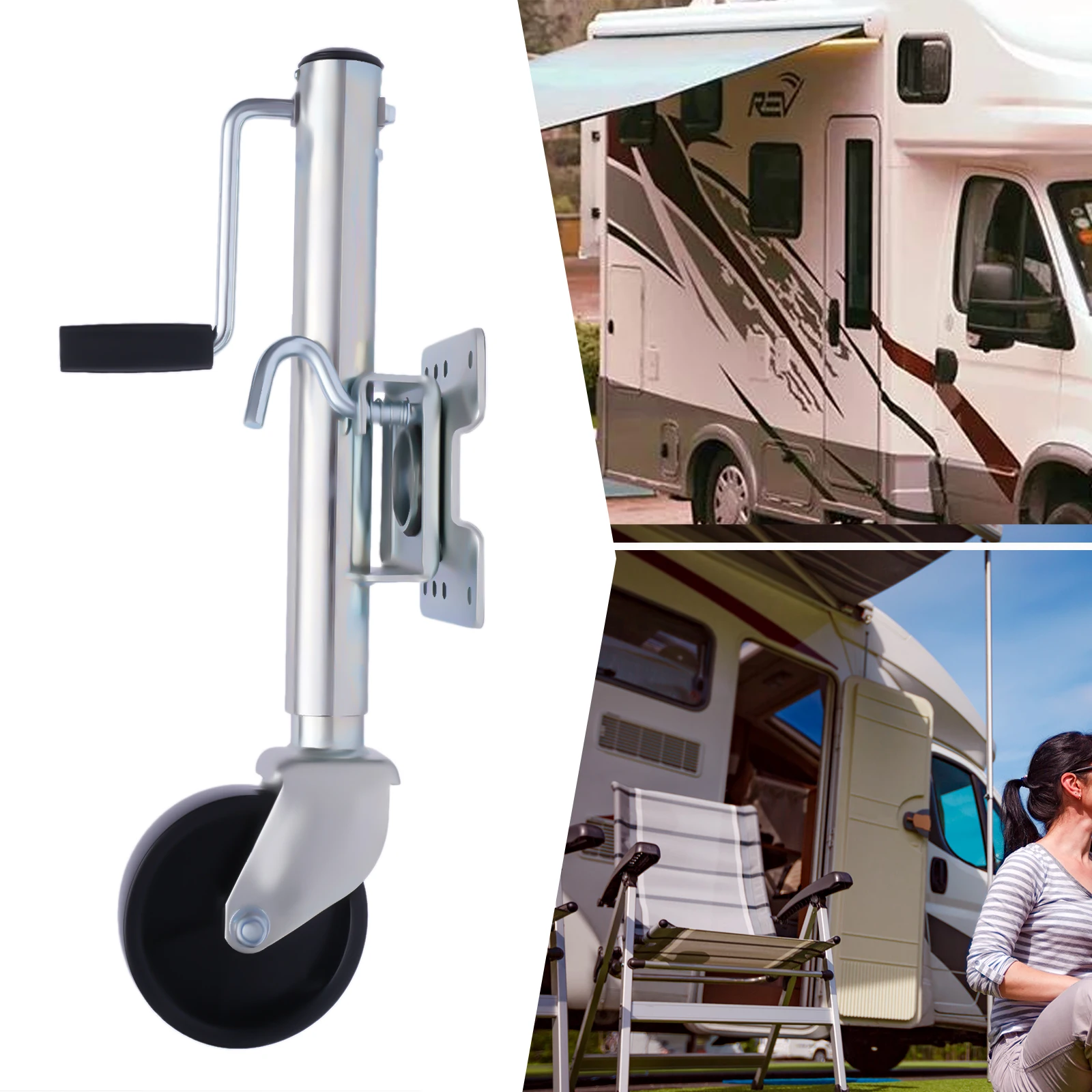 Zum Bequemen an- Und Abkuppeln Ihres Anhängers Ist Ein Stützrad Unverzichtbar. Wenn Sie Ihren Anhänger Damit Ausstatten Möchten, Ist Dieses Stützrad Eine Gute Wahl. Aus Hochwertigem Verzinktem Stahl Gefertigt, Ist Dieses Stützrad Rostfrei Und Robust Und Hat Eine Maximale Tragfähigkeit Von 1200 Lb, Wodurch Es Für Die Verwendung Mit Den Meisten Anhängern, Wohnwagen, Wohnmobilen Und Anderen Fahrzeugen Geeignet Ist. Das 200 Mm Plastik Hilft, Ihren Anhänger Leicht Zu Bewegen, Wenn Das Stützrad Angebracht Ist Das Klappsystem, Das Rad Klappt Beim Aufziehen Hoch, Um Mehr Bodenfreiheit Zu Geben.