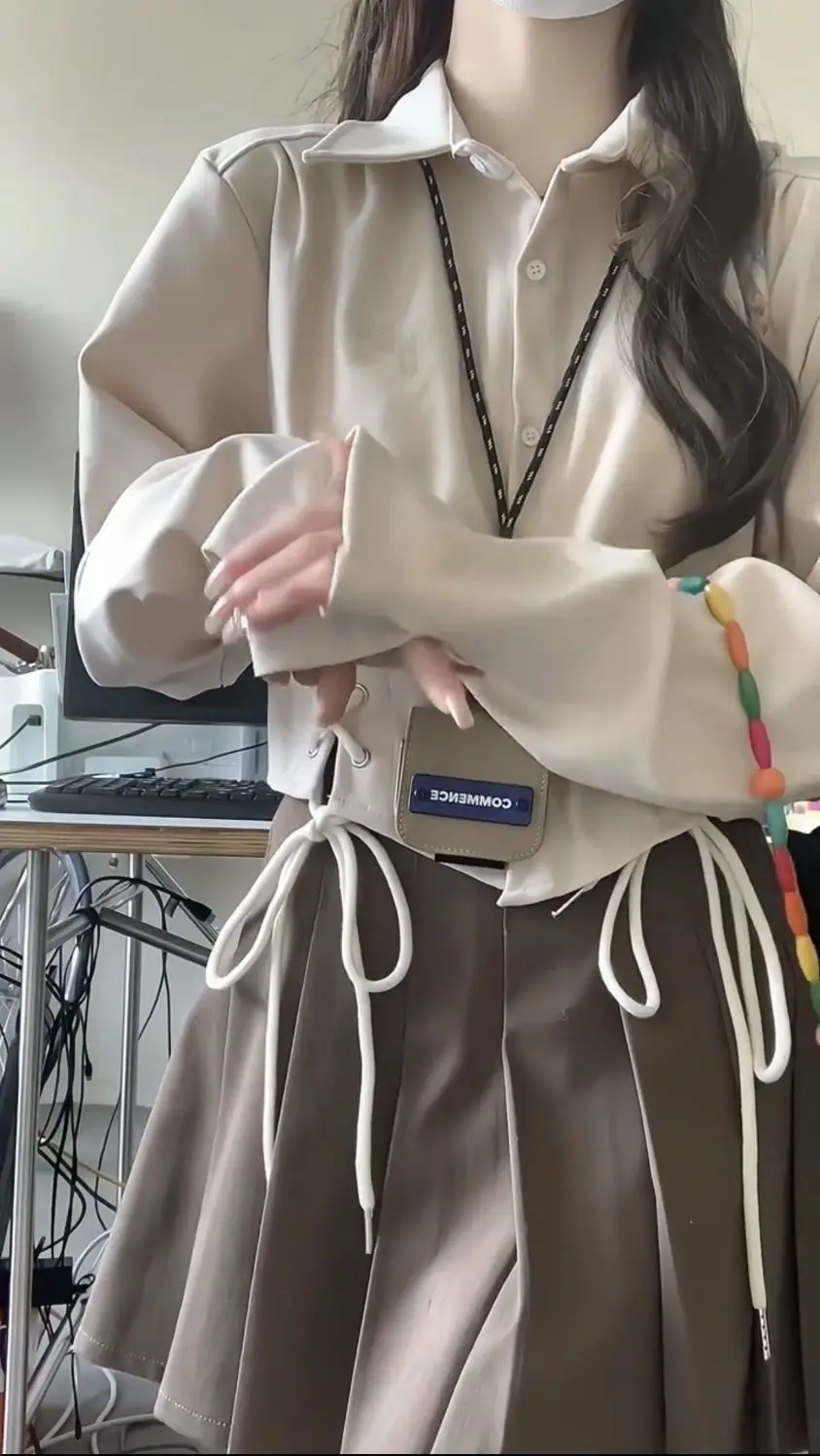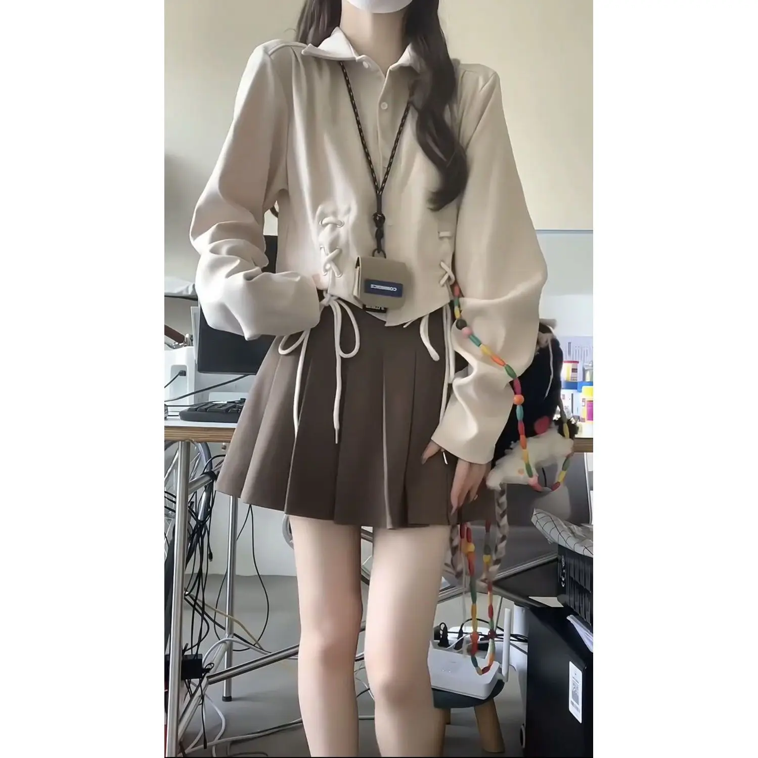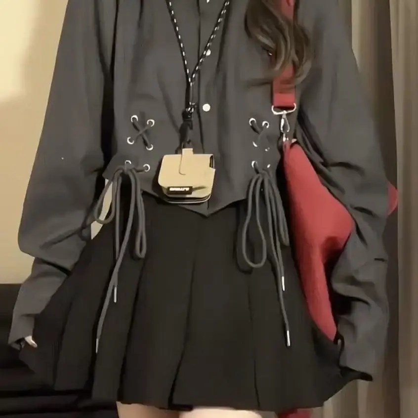 Long Sleeve Shirts Women Japanese Style Sweet Spicy Girls College Bows Lace Up Solid Autumn Winter Loose Single Breasted Fashion