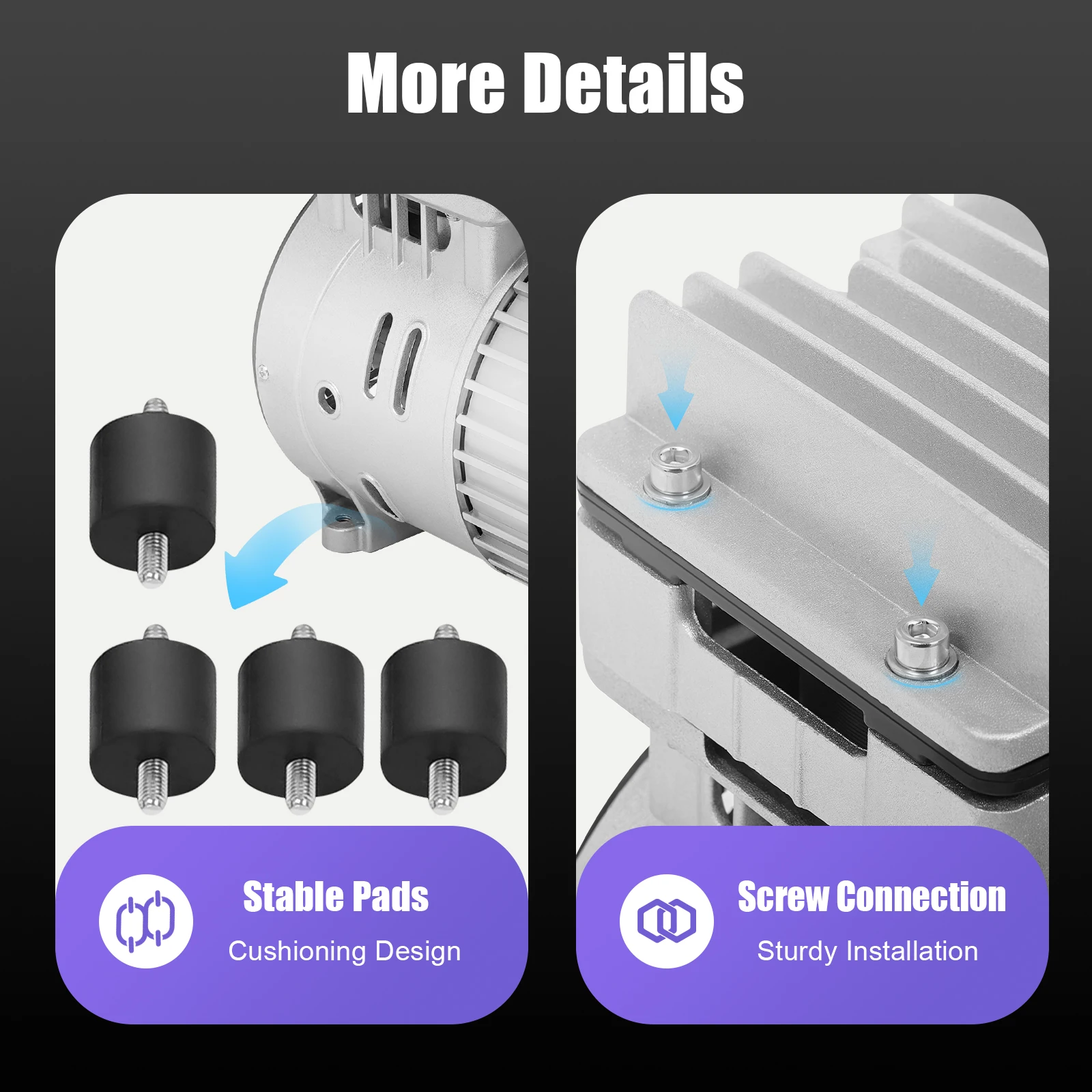 Oil-free Compressor: This air compressor is oil-free, which is not only environmentally friendly but also avoids the trouble of difficult maintenance of ordinary air compressors.