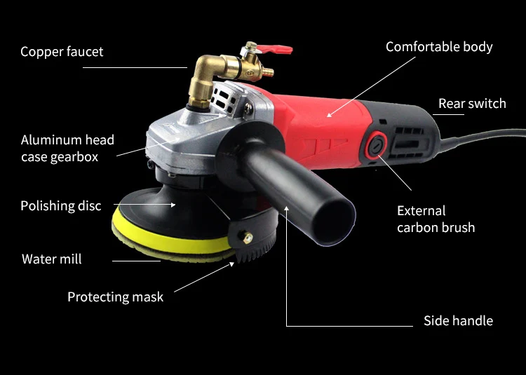 Electric Polisher Marble Granite Wet Stone Polishing Machine Grinder Hand Grinder Water Grinder Polishing Pad Power Tool