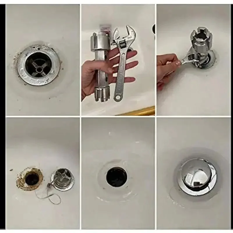 2. The large end of wrench can be applied for kitchen sink baskets, flush valves, or other large drains.
