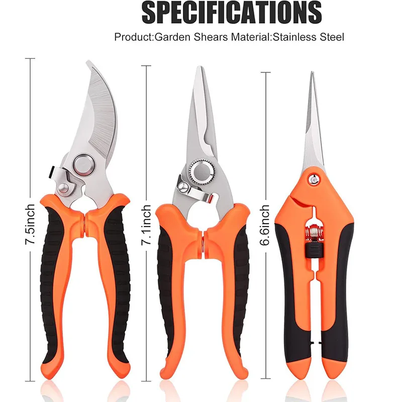 3PCS Pruning Shears For Gardening Garden Scissors With Sharp Stainless Steel Blade Bypass Pruning Shears Set For Flowers Fruit
