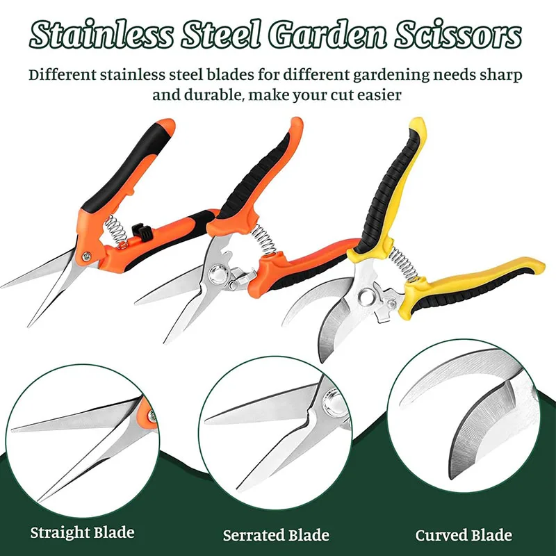 【Wide Use Pruners】Our pruning shears set includes 3 gardening shears: straight blade, serrated blade, curved blade. Perfect for trimming flowers, plants, bonsai, hydroponics, herbs, light branches and more to encourage overall plant health and appearance. Pruning Sheers Garden Shears Garden Shears Pruning Shears for Gardening Gardening Shears Garden Scissors Garden Clippers Pruners for Gardening Flower Scissors Pruners Pruner Garden Shears Pruning Pruning Shears Heavy Duty