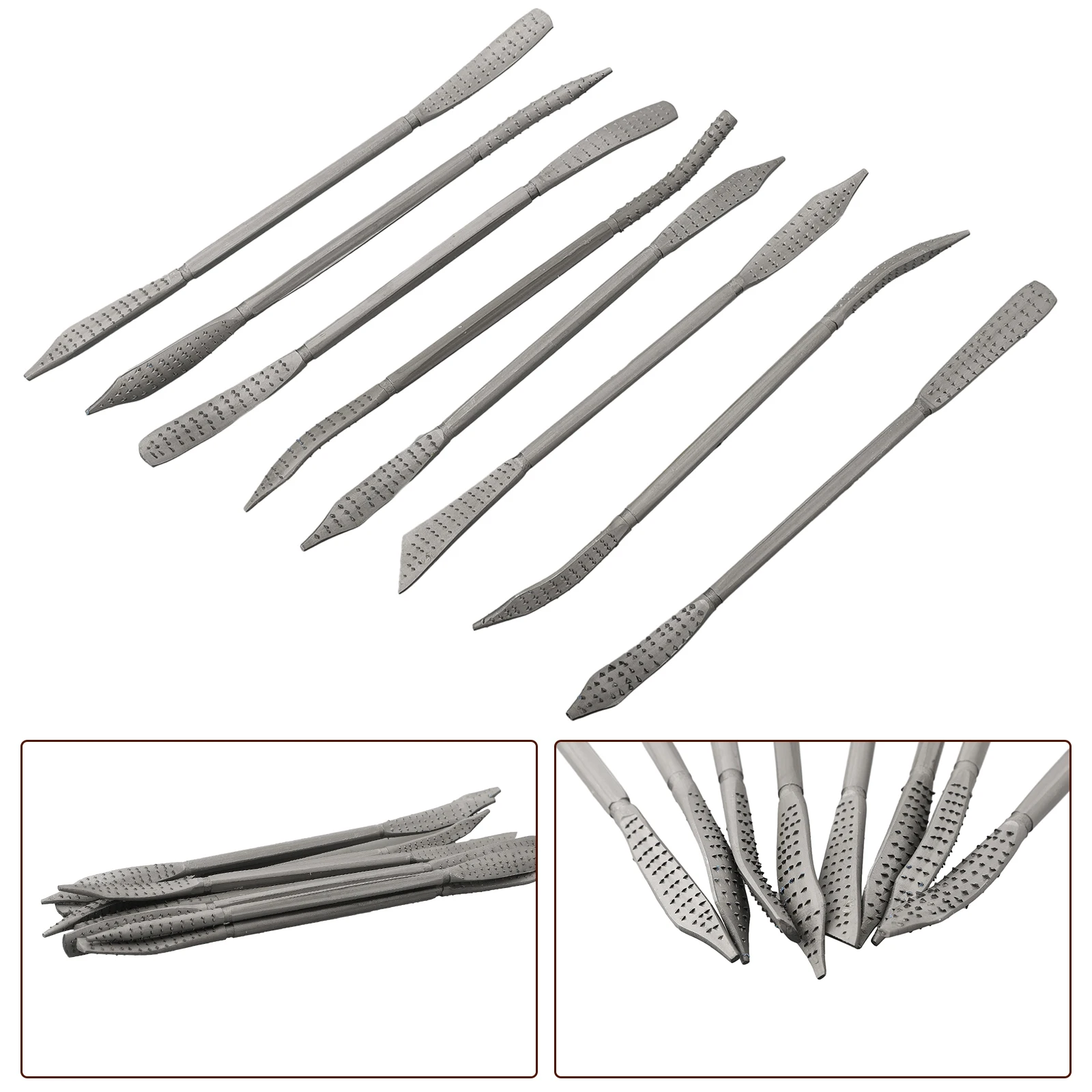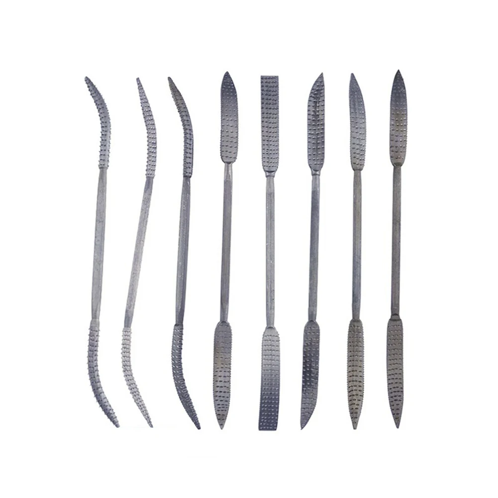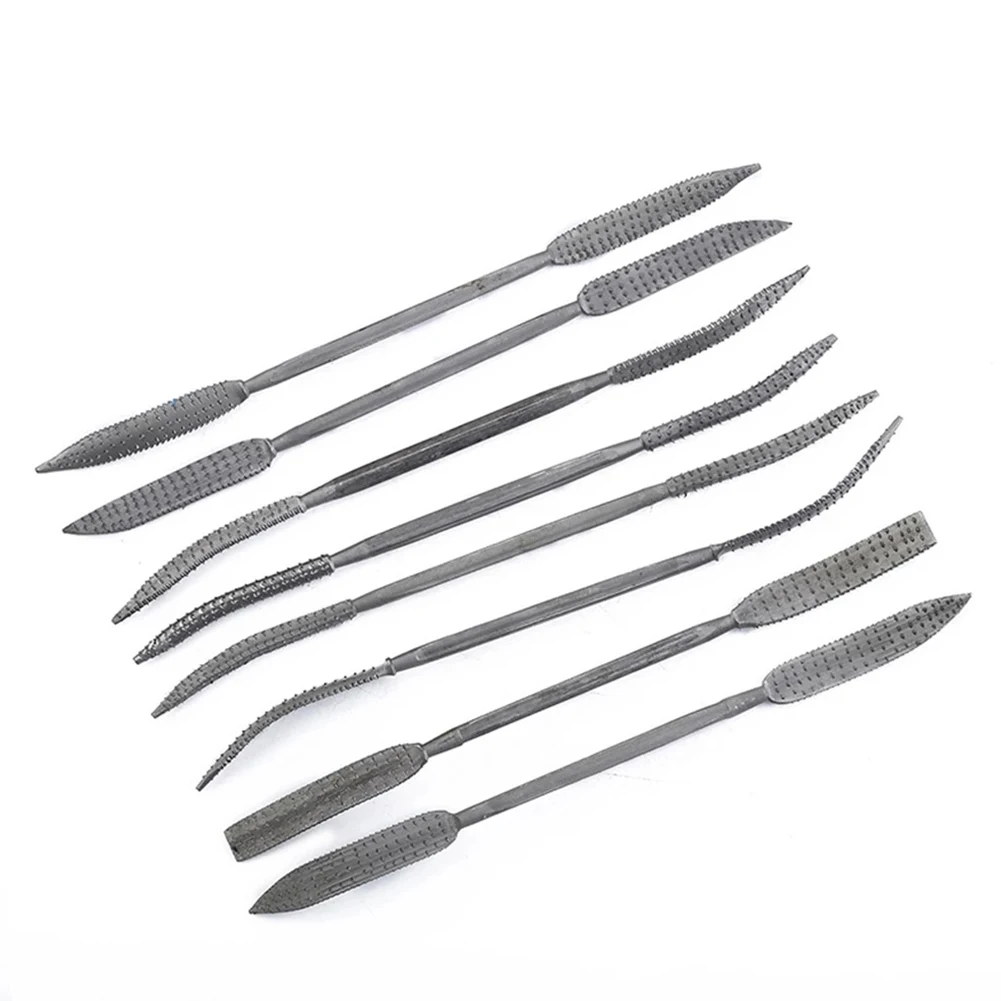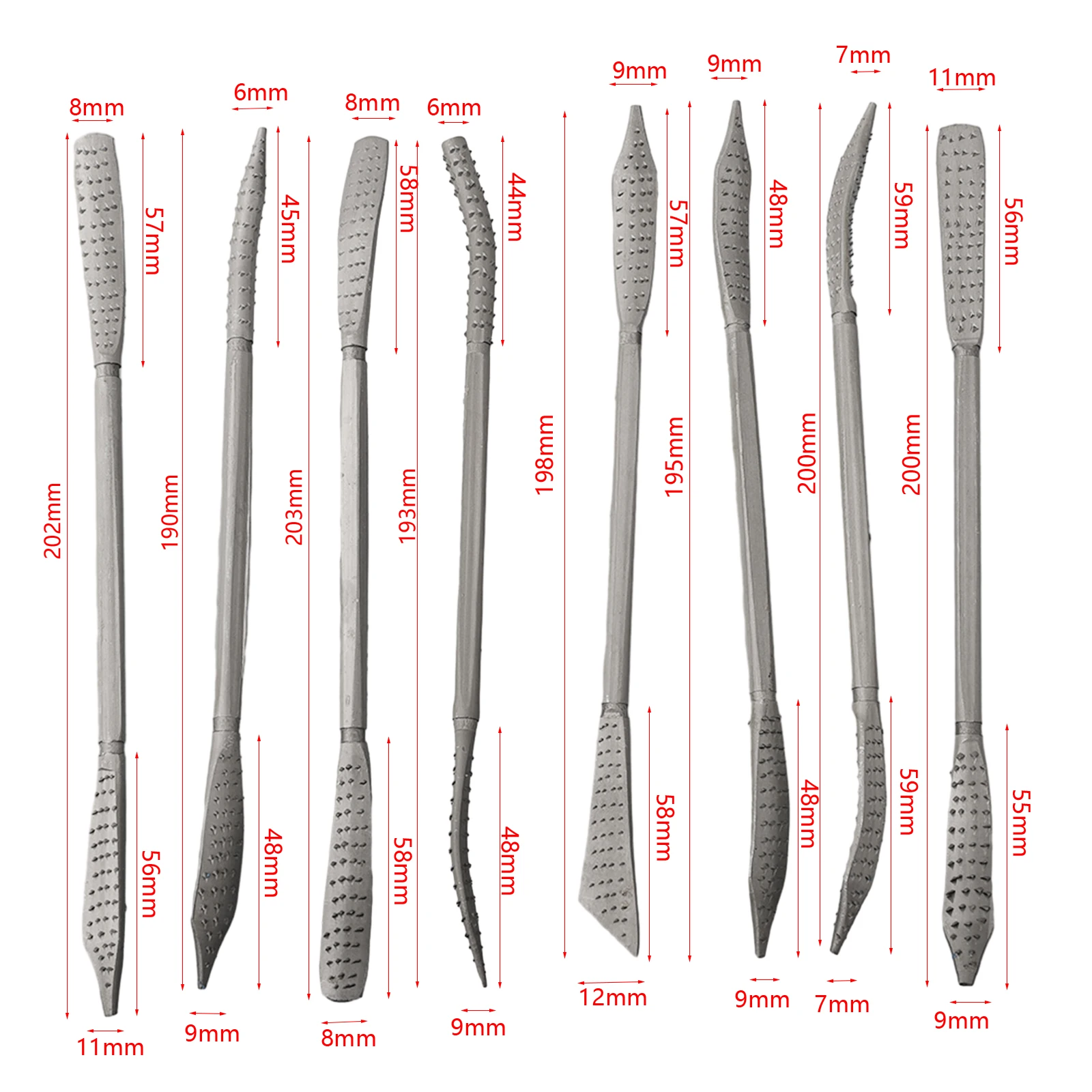8 Pcs Wood Rasp Riffler File Tool Set Curved Double Ended Coarse Grinding 190mm Carbon Steel For Woodworking Carving Hand Tools