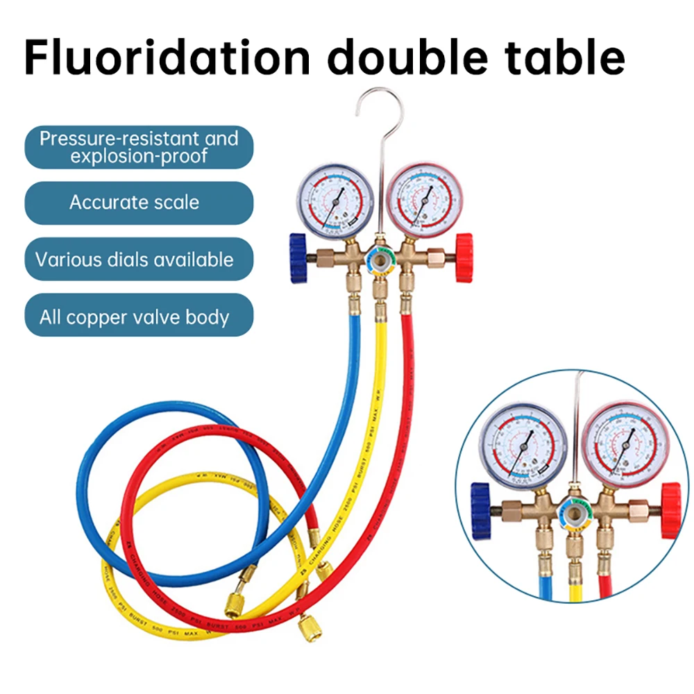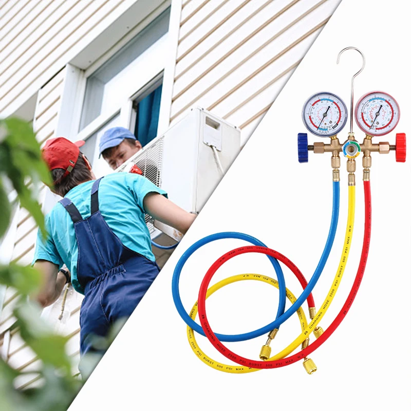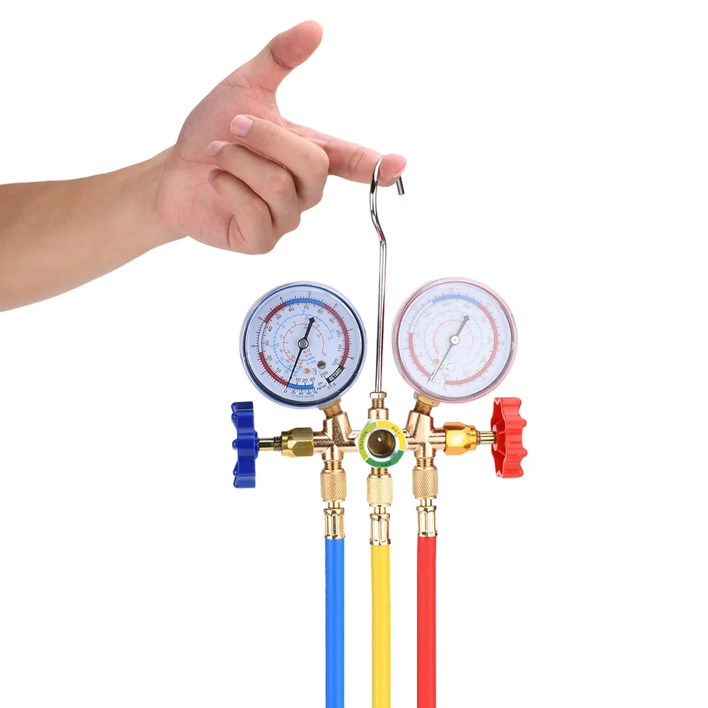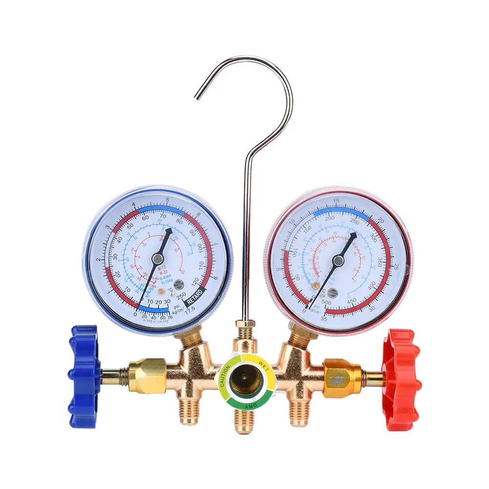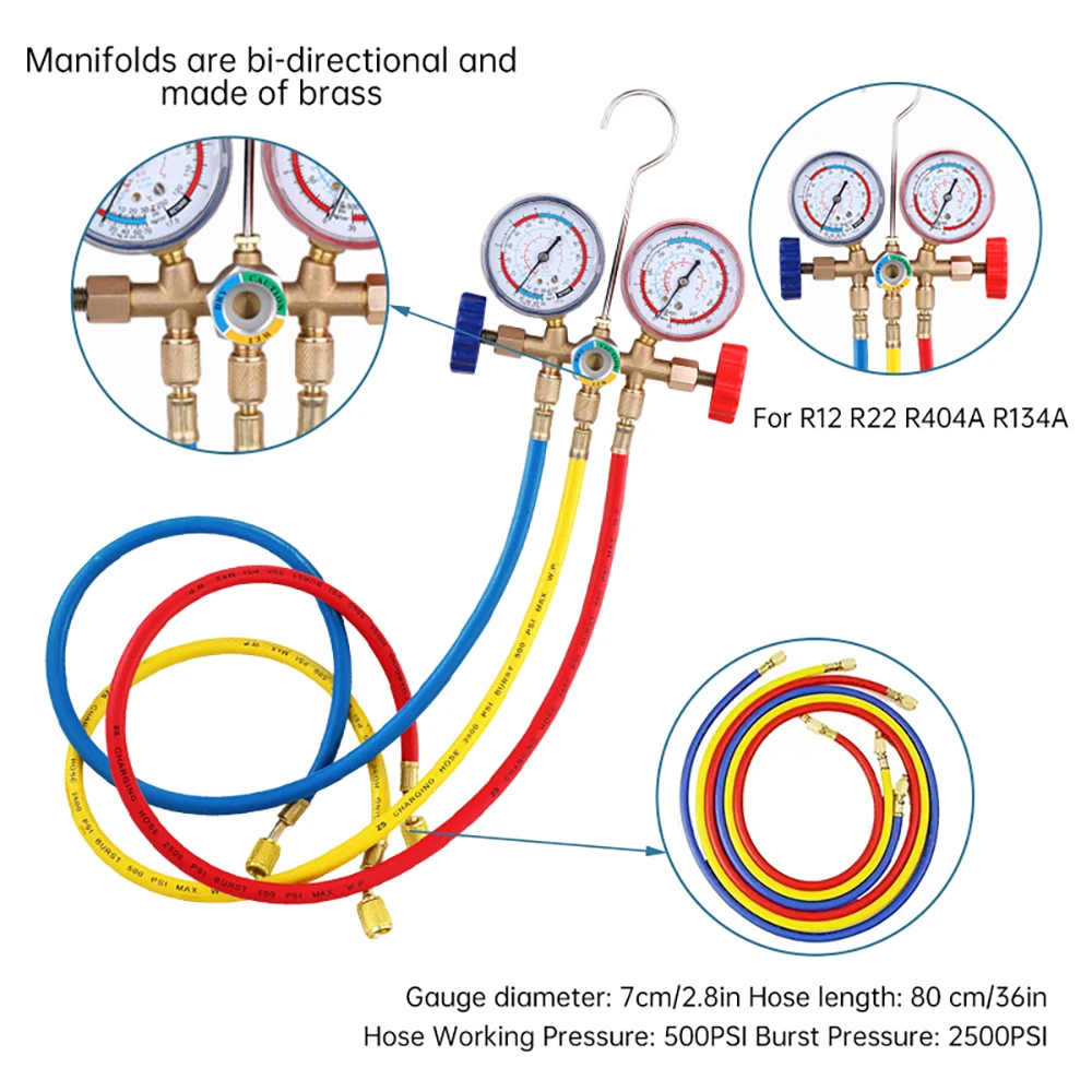 500PSI Air Conditioning Pressure Gauge with Hose Hook 3 Way AC Diagnostic Manifold Gauge Set for Freon For R12 R22 R404A R134a