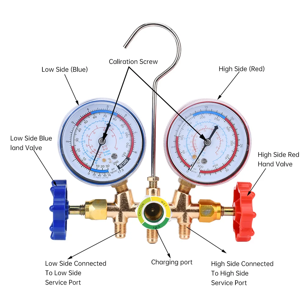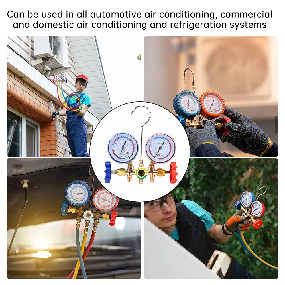 2500PSI Air Conditioning Pressure Gauge with Hose Hook 3 Way AC Diagnostic Manifold Gauge Set for Freon For R12 R22 R404A R134a