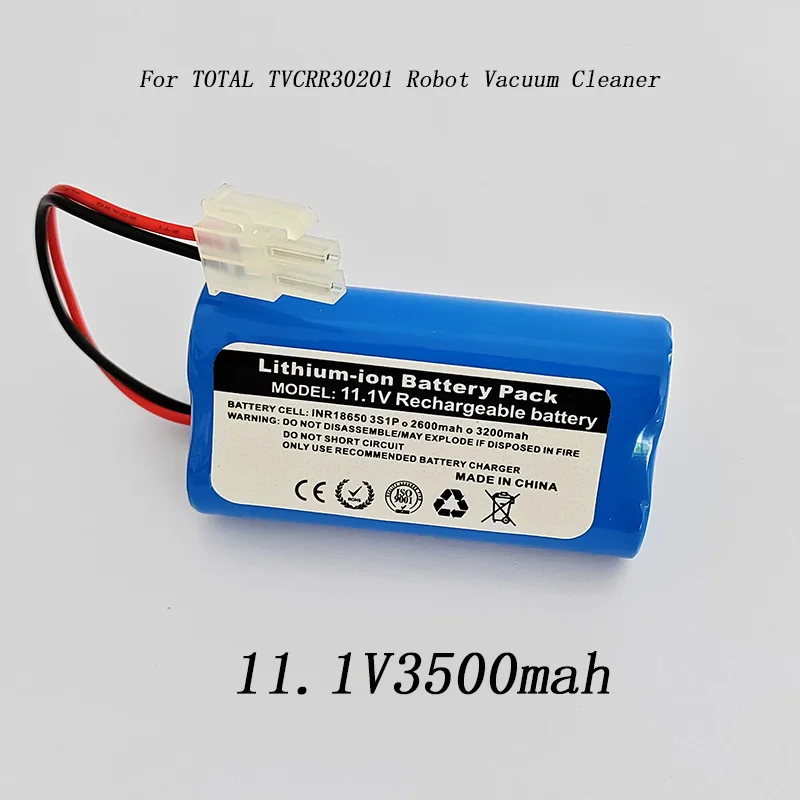 Rechargeable type Li-ion Battery 11.1V 10.8V 2600mAh 3200mAh 18650 3S1P For TOTAL TVCRR30201 Robot Vacuum Cleaner Battery Pack