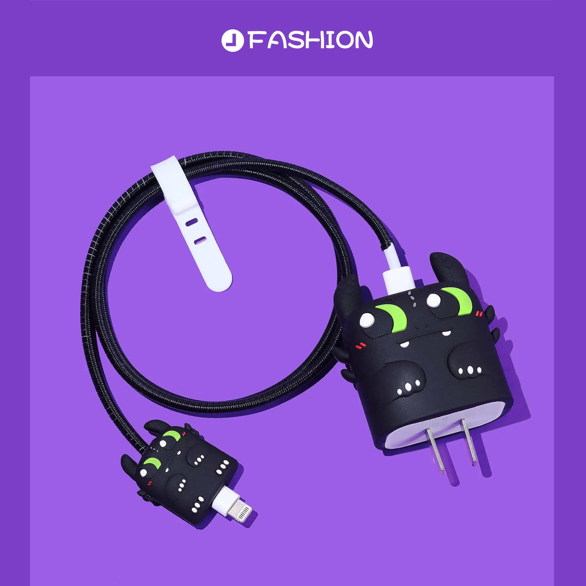 4pcs Cute Cartoon USB Data Cable Protective Case Suitable for iPhone 15promax 13/12/11 18W/20W Fast Charging Line Organizer
