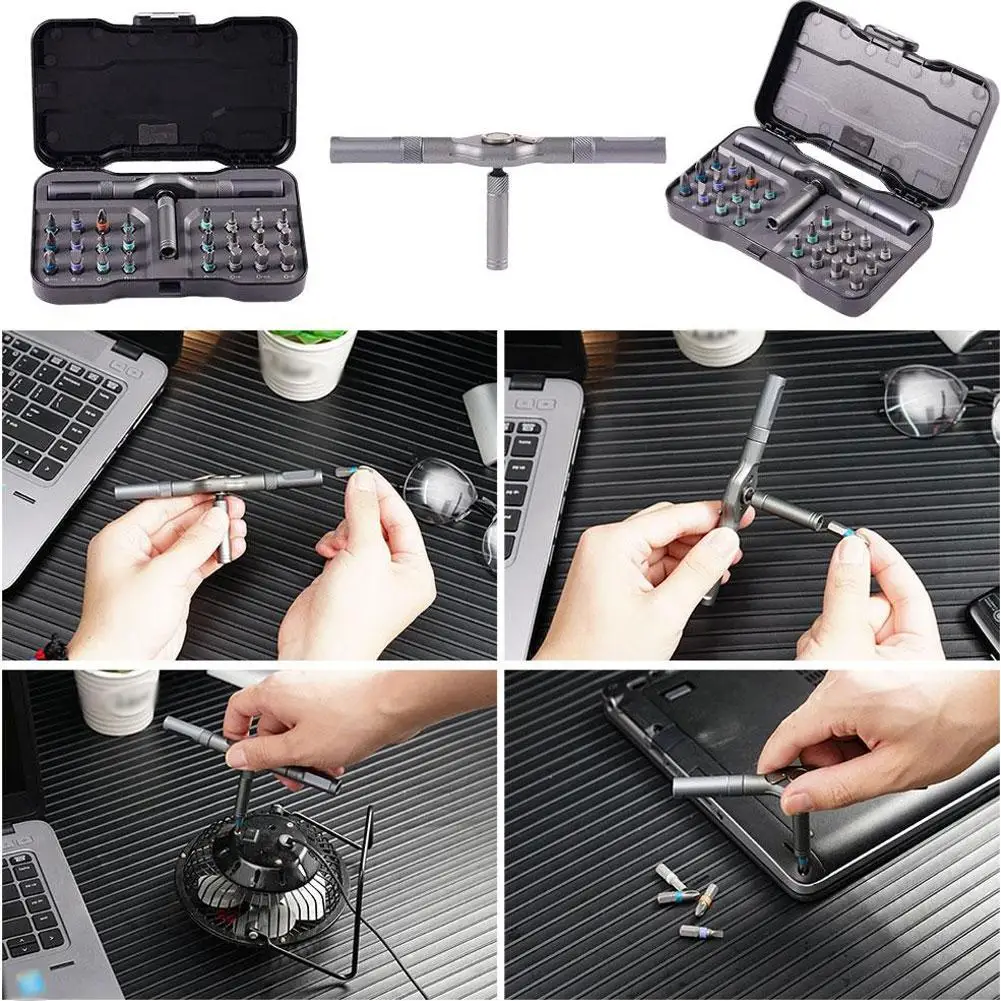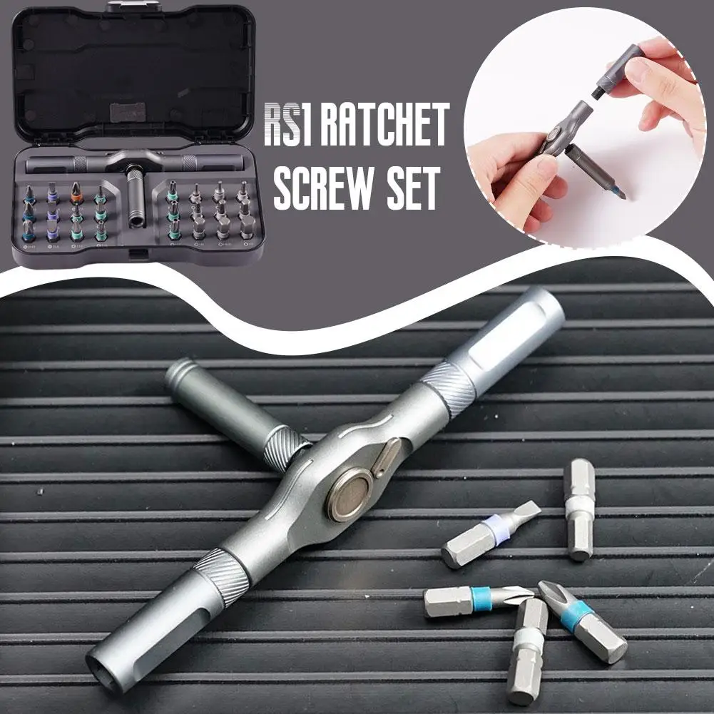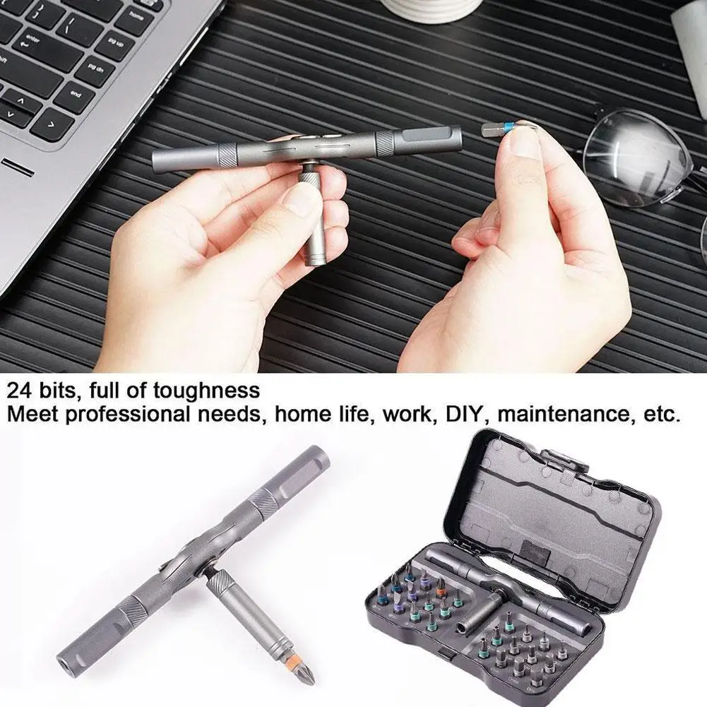 Multi-purpose 24 in 1 Ratchet Wrench Screwdriver S2 Magnetic Bits, Detachable T Ratchet Handle Magnetic Screw Driver Set