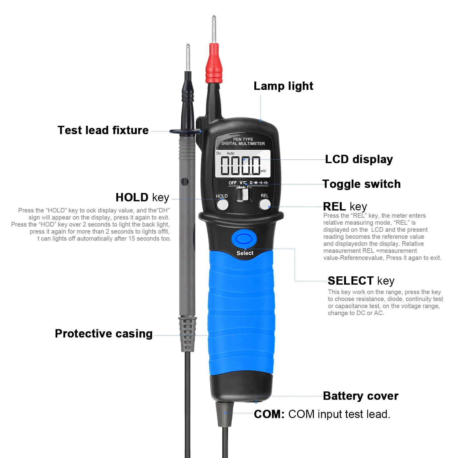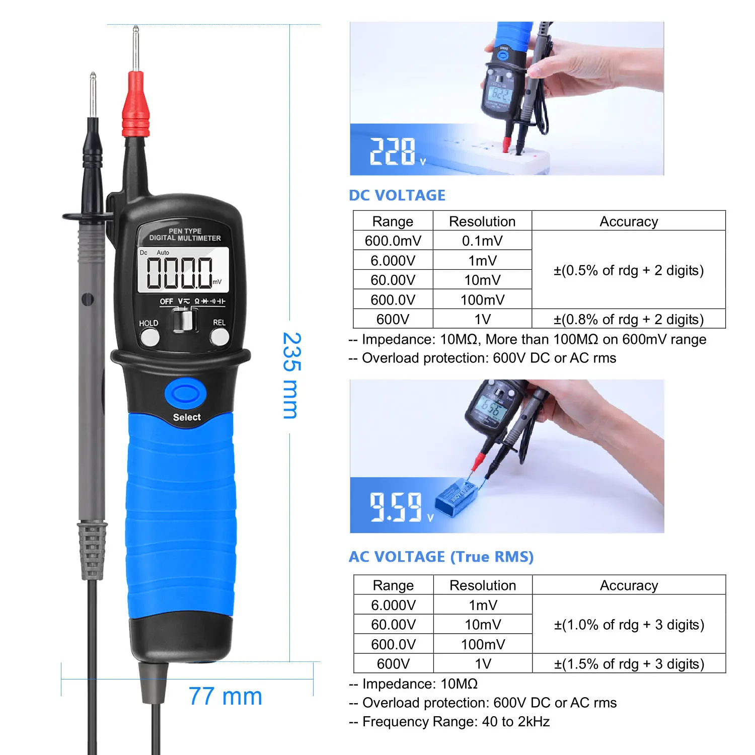 ????【Safety & Quality】Complies with overvoltage standard 600V (CAT III) according to IEC-1010. Double insulation (Class II protection),overload protection design. Kethvoz KE-38B hand held multimeter pen comes with a 365-day warranty and lifetime technical support.s.