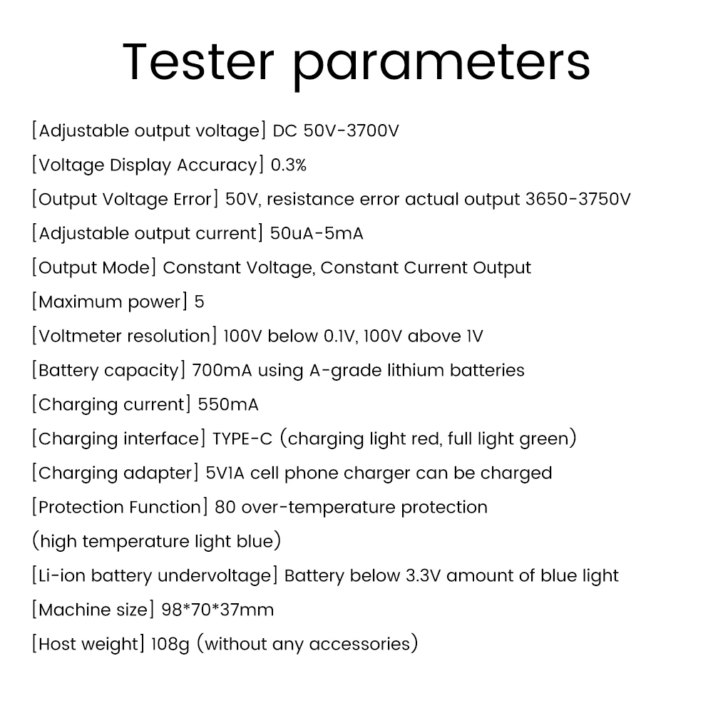 Output voltage error: ±50V, the actual output of the resistor is 3650-3750V if there is an error