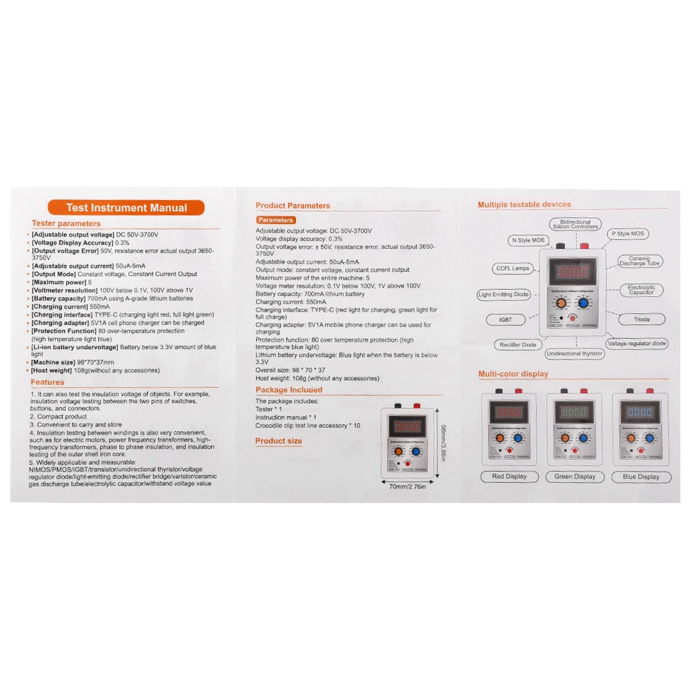 IGBT Voltage Capability Transistor Tester DC50-3700V Diode MOS Triode MOV Voltage Capability Transistor Withstand Voltage Tester