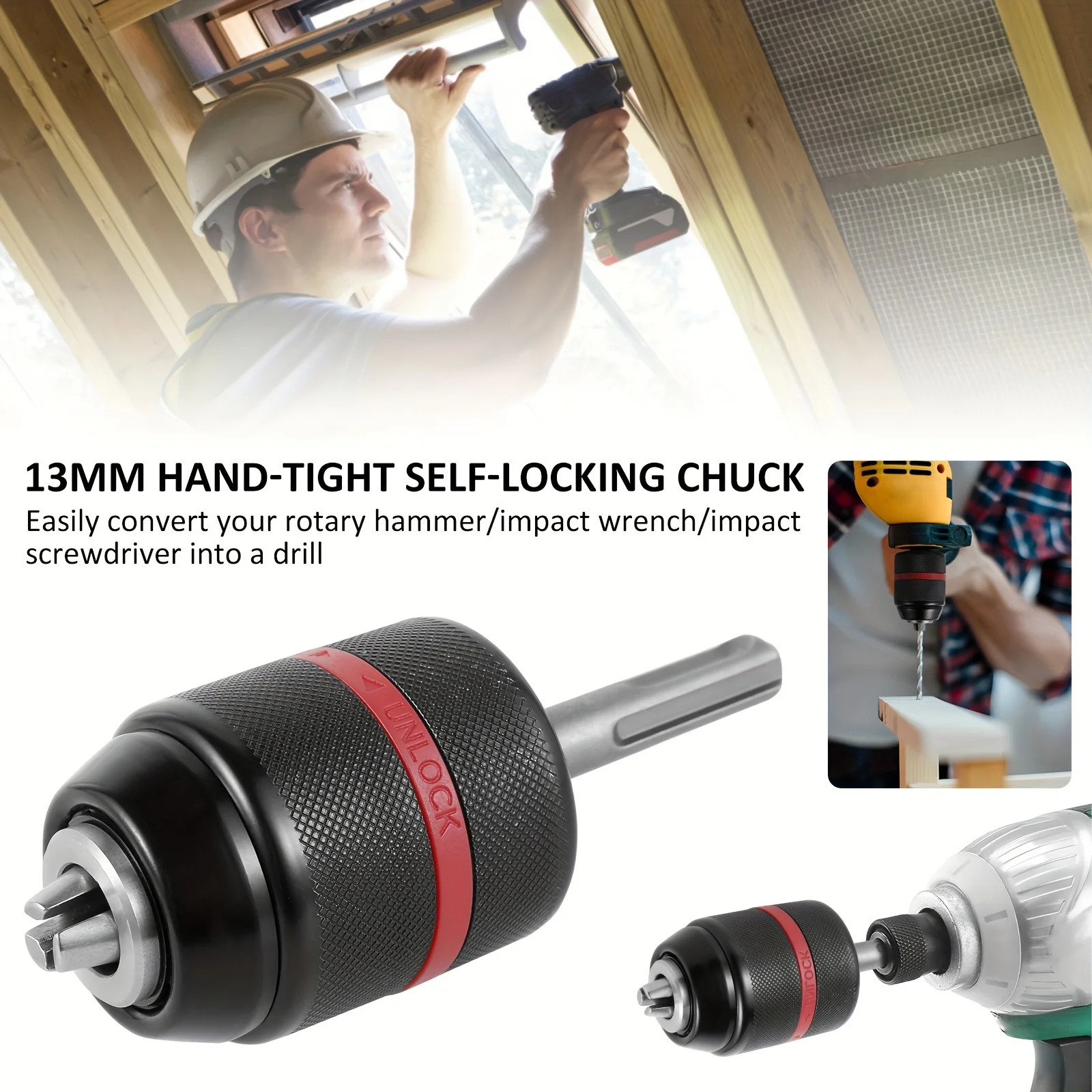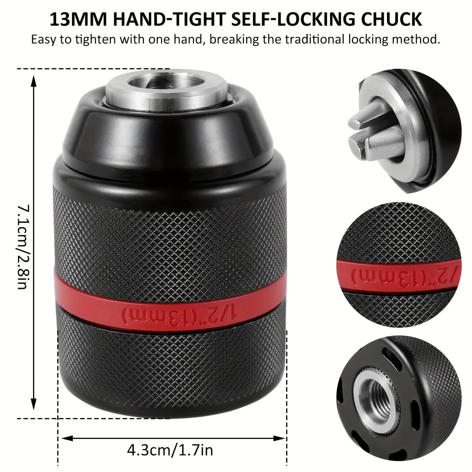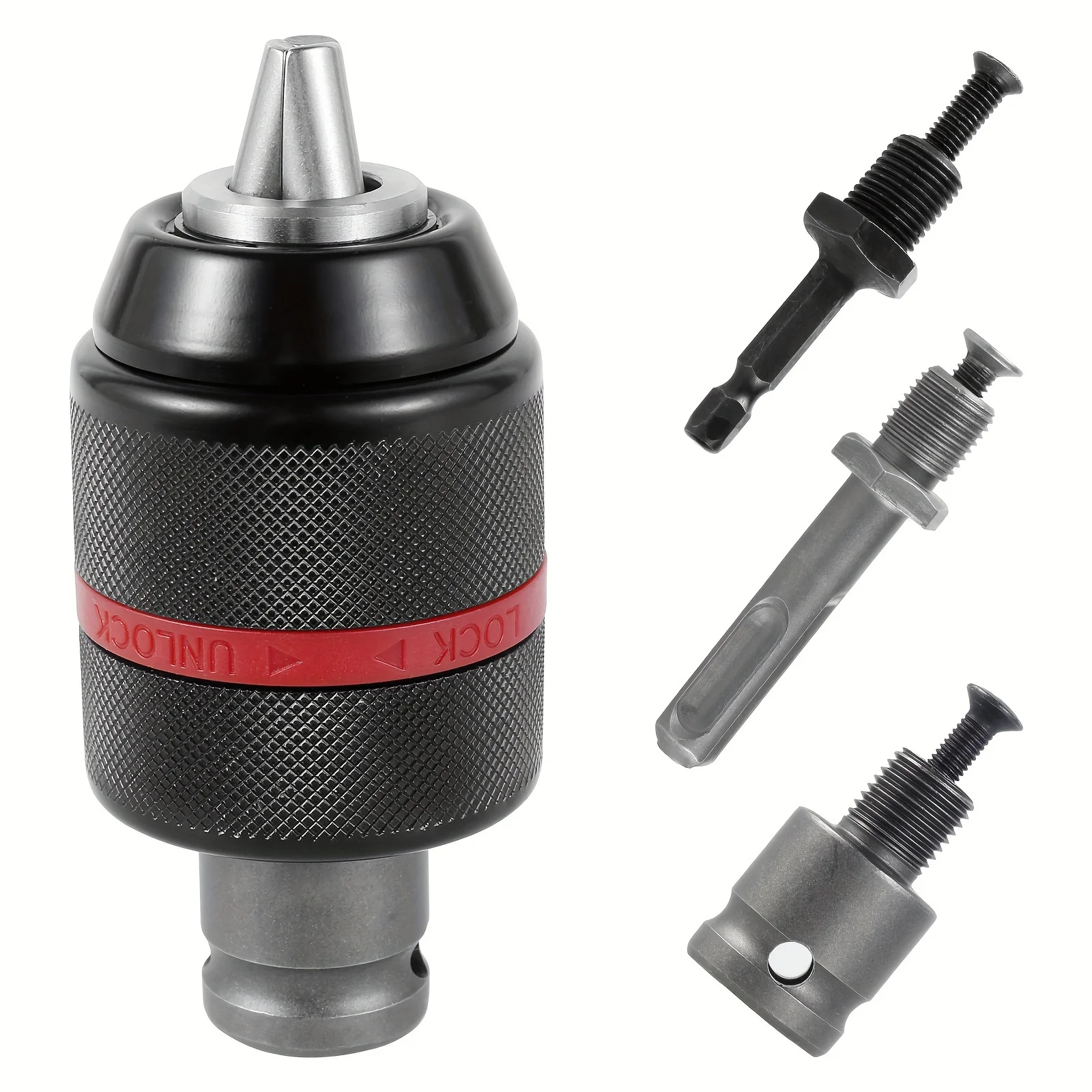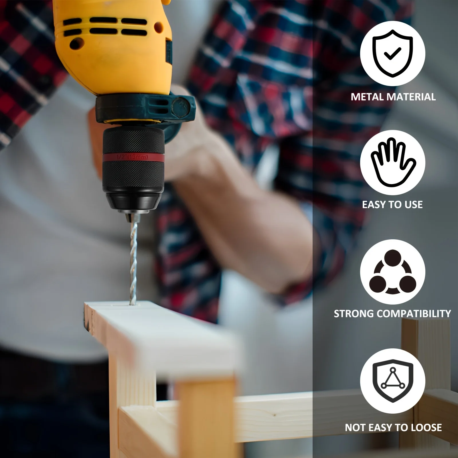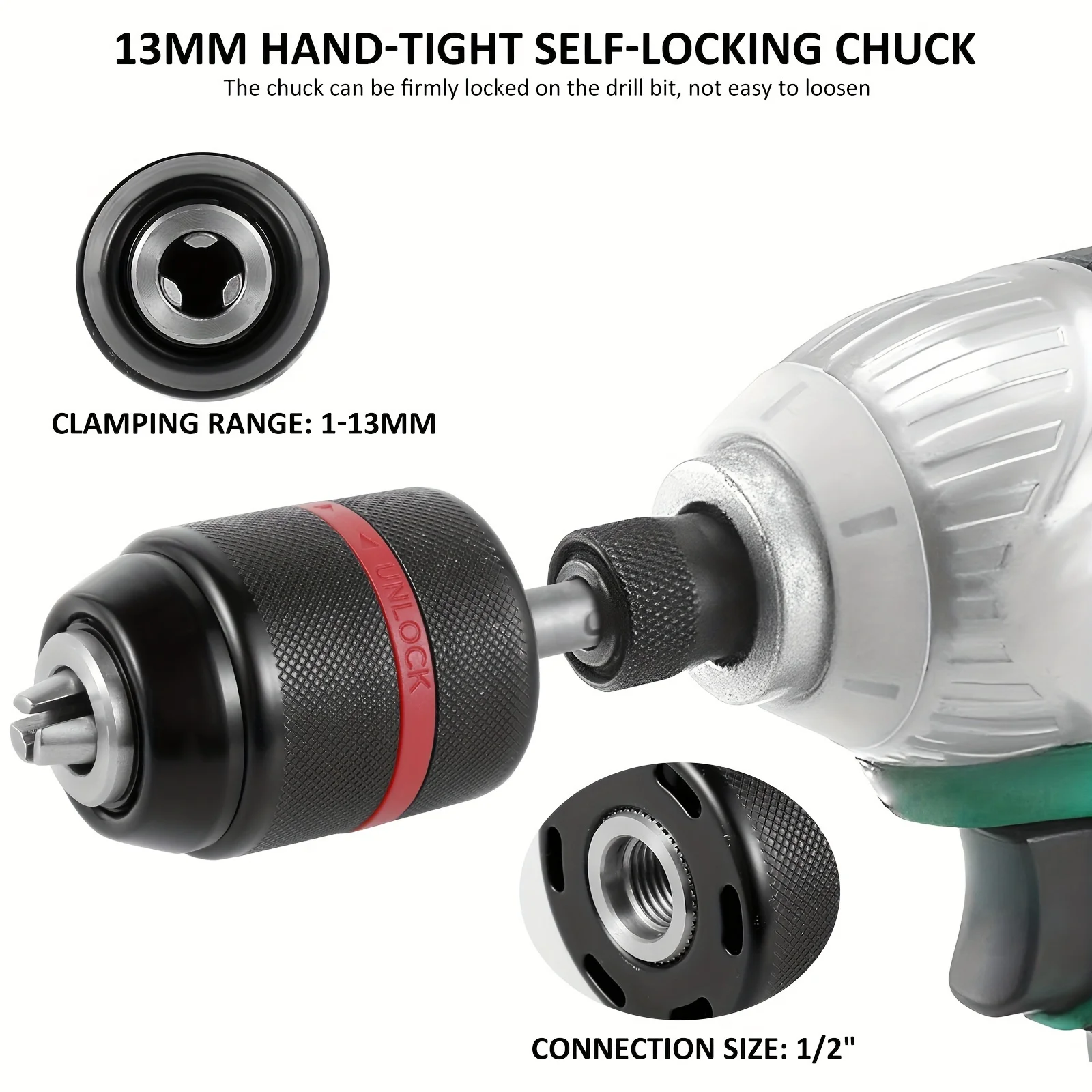4set/set Drill Chuck Adapter Kit 1-13mm Self Tighten Hand Drill Chuck Keyless 1/2inch-20UNF with Shank 1/4inch Hex Shank 1/2inch