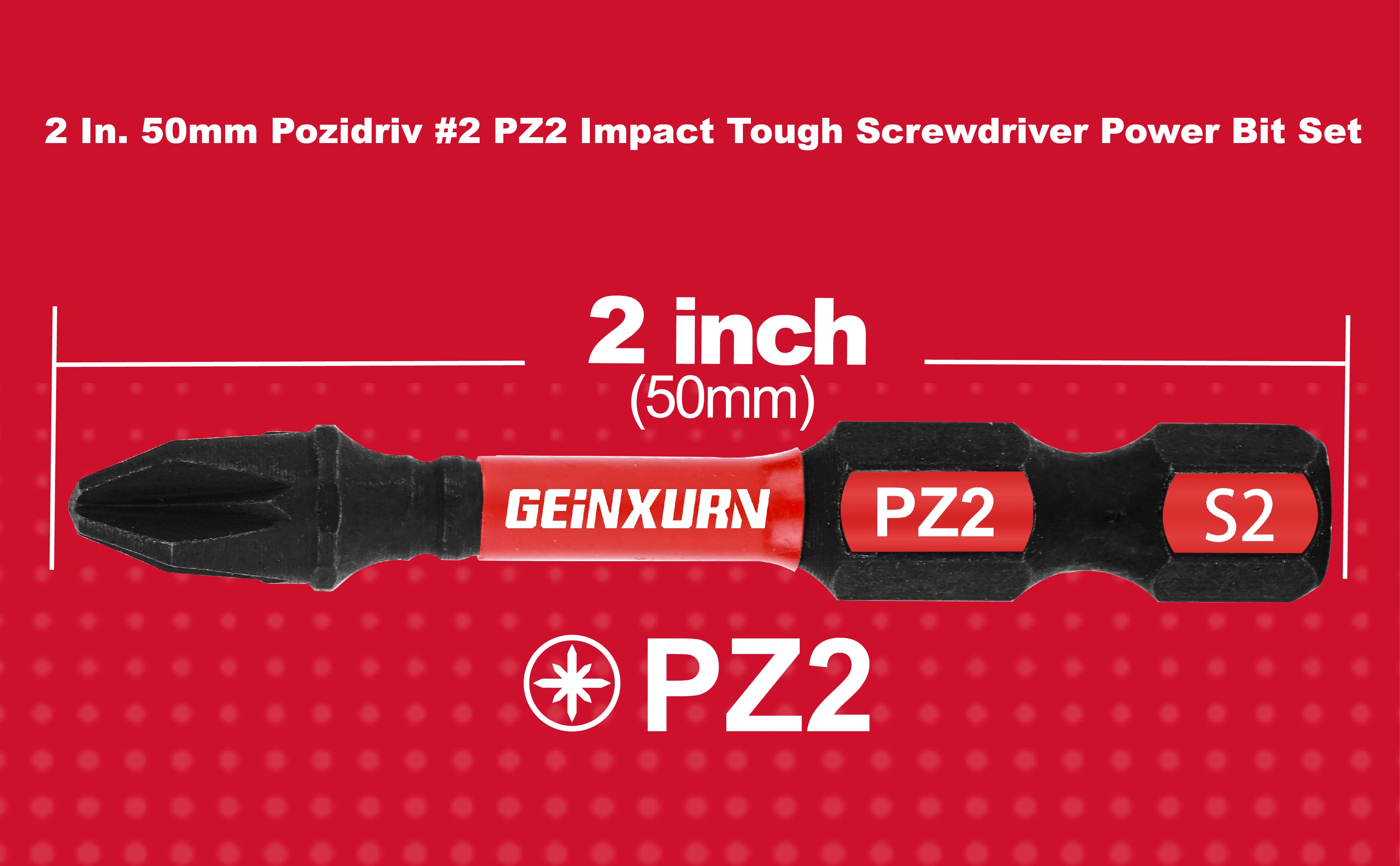 Geinxurn Impact Tough Screwdriver Power Bit SetPozidriv #2 PZ2 Impact Tough Screwdriver Power Bit Set 2 Inches Pozidriv #2 PZ2 Impact Tough Screwdriver Power Bit SetS2 ALLOY STEEL