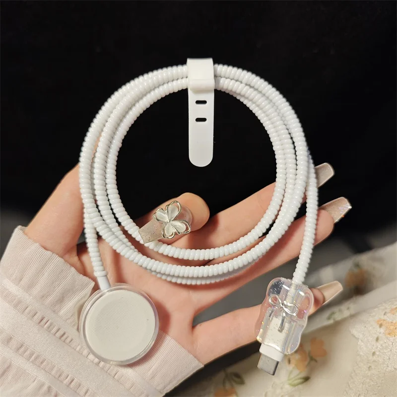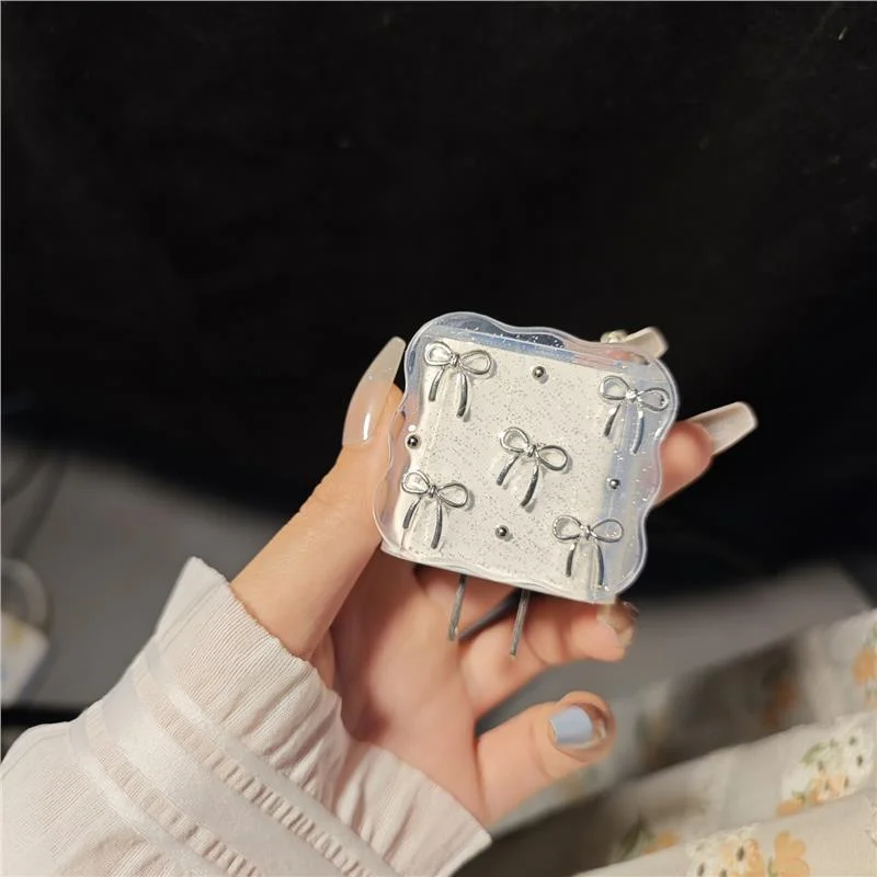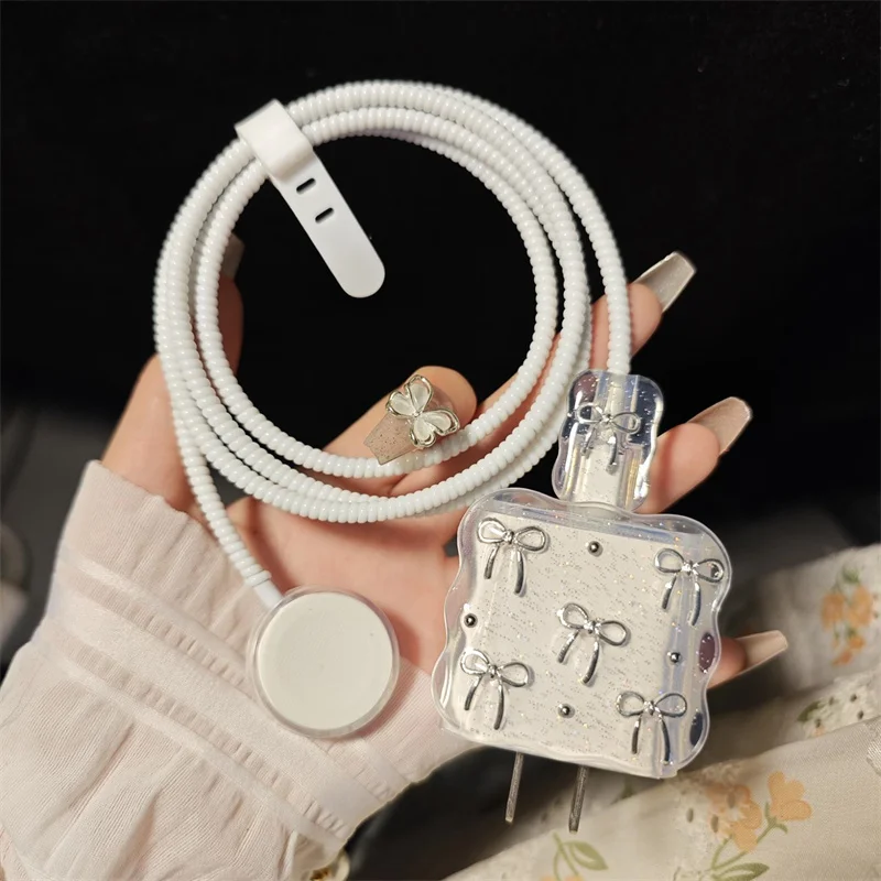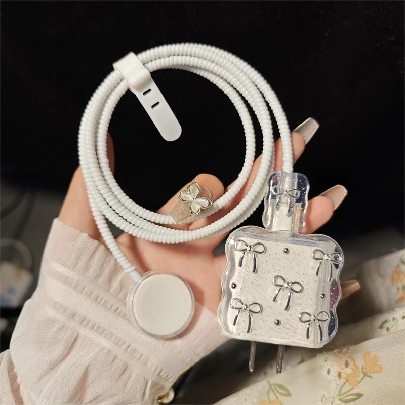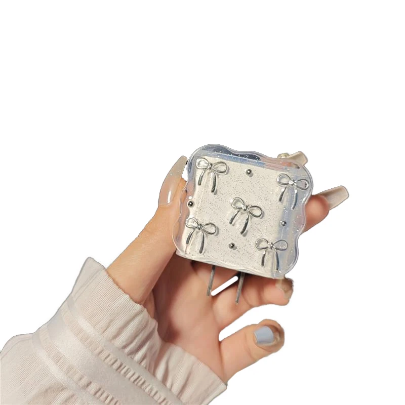 Y2k Cute Silver Bow Epoxy Charger Cover For Apple Watch 42mm 46 mm 49mm 45 41 10 9 8 20W Charge Protection Cover Charger Sleeve