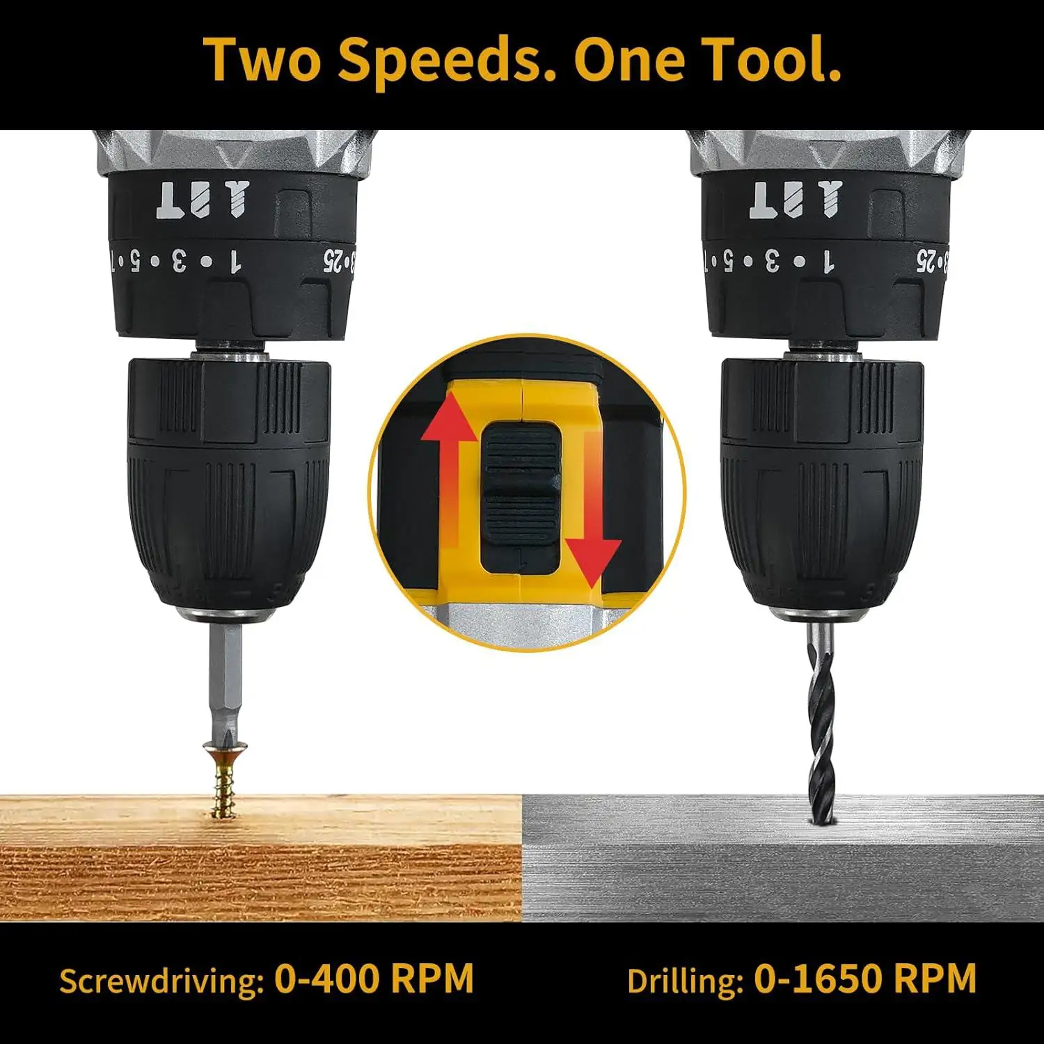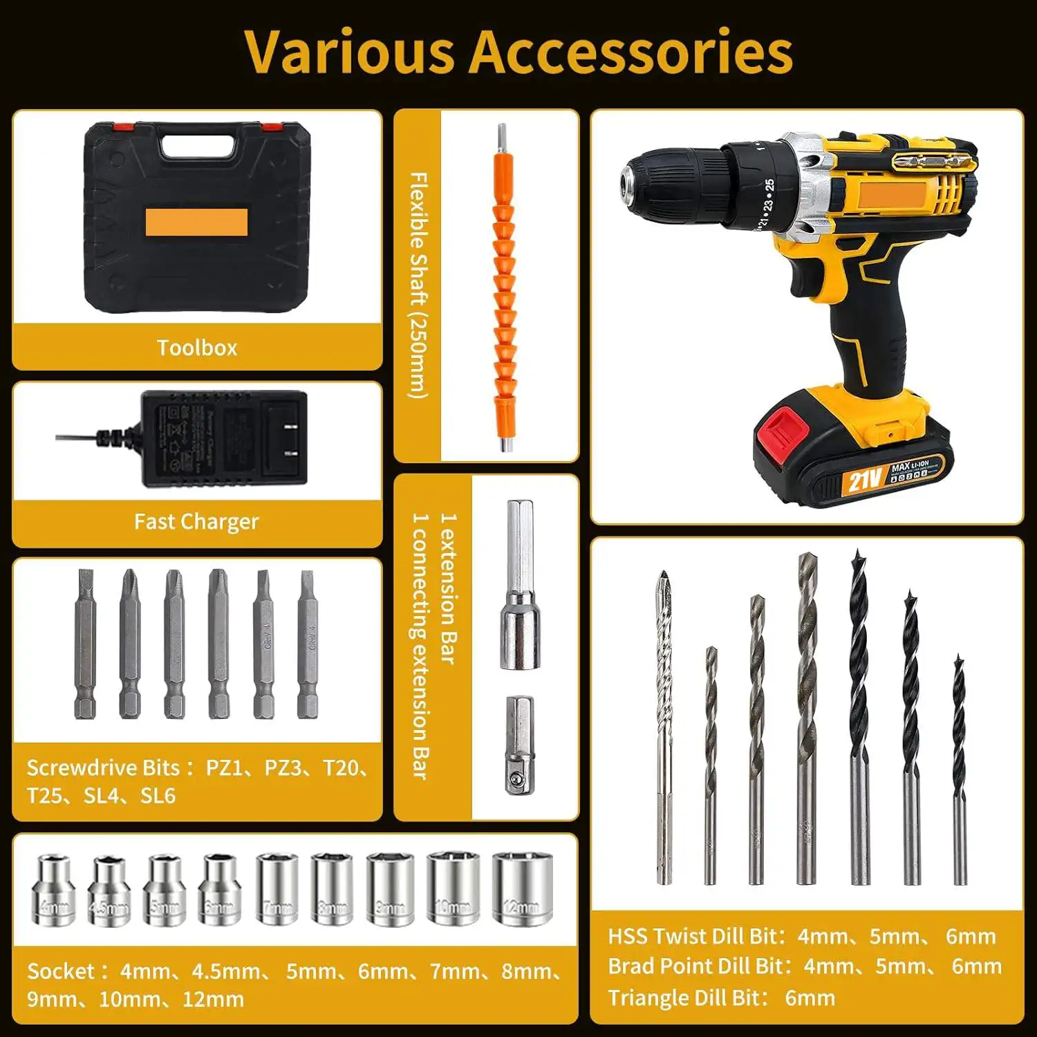 Cordless Brushed Electric Hand Drill 1800rpm Pistol Impact Drill 3/8" Electric Screwdriver Rechargeable Household Power Tool
