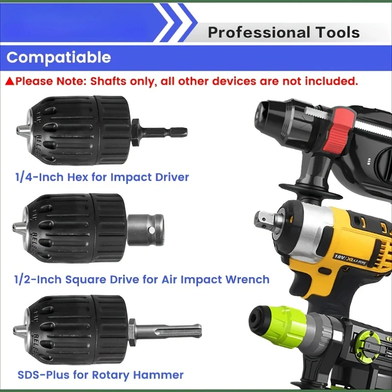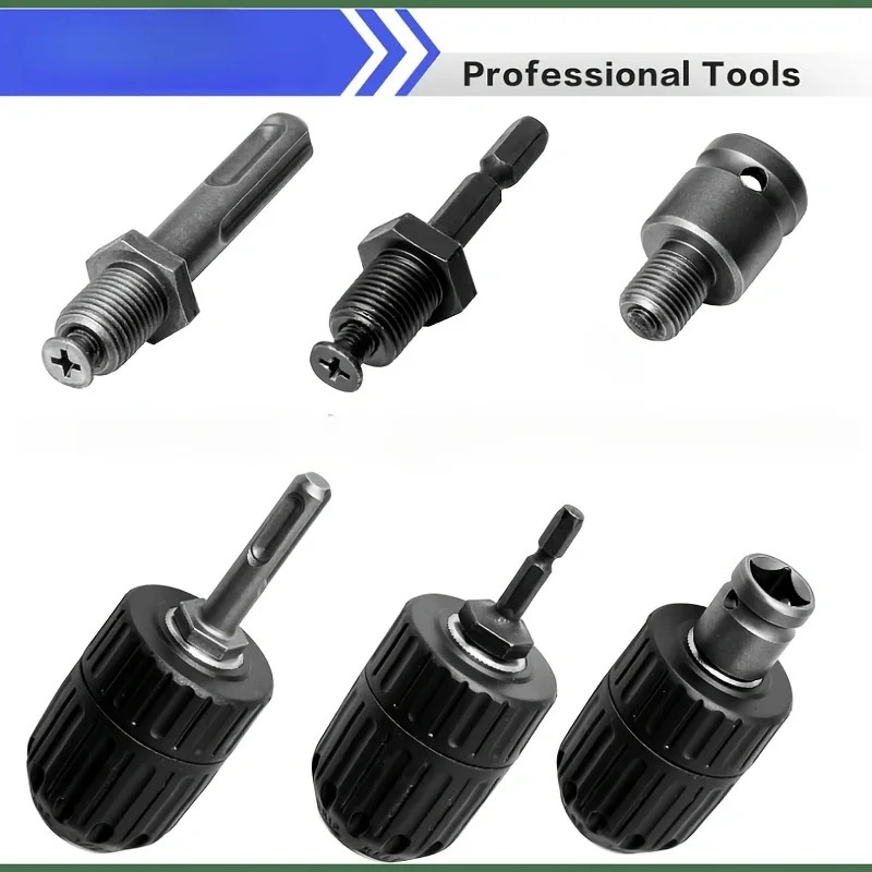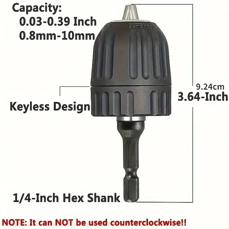 Keyless Drill Chuck Adapter, 0.8-10mm Automatic Chuck 10mm Electric Adapter Head 10mm Hexagonal Handle 10mm Round Handle, Suitable for Impact Wrench, Electric Drill, Hammer Drill