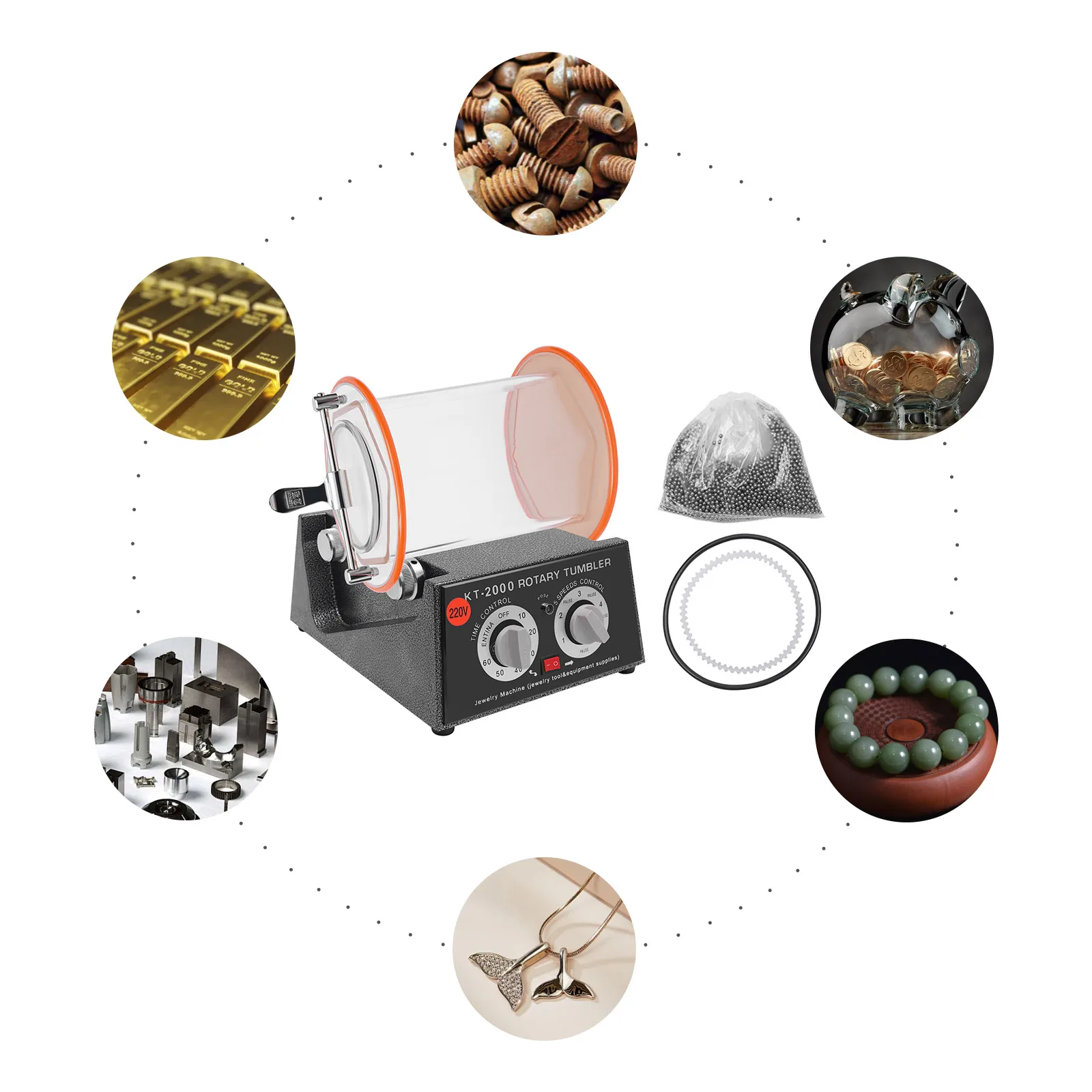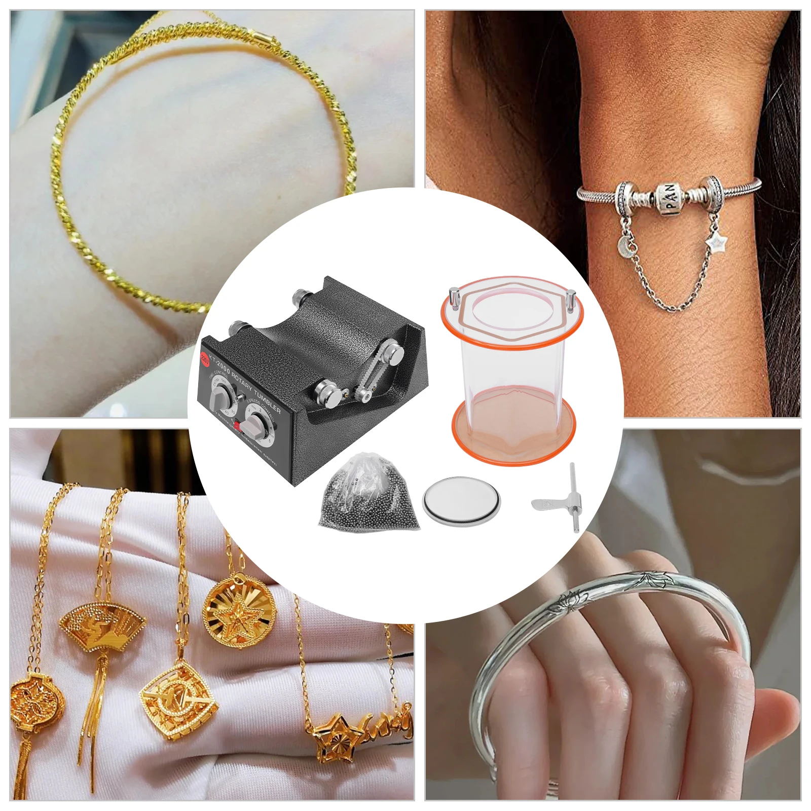 It is suitable for home, studio and small jewelry projects. It is suitable for polishing rings, necklaces, bracelets and other precision jewelry with oxidized, blackened and unclean surfaces in sterling silver and gold. It is also suitable for polishing and grinding non-magnetic metals such as platinum, gold, silver and stainless steel.
