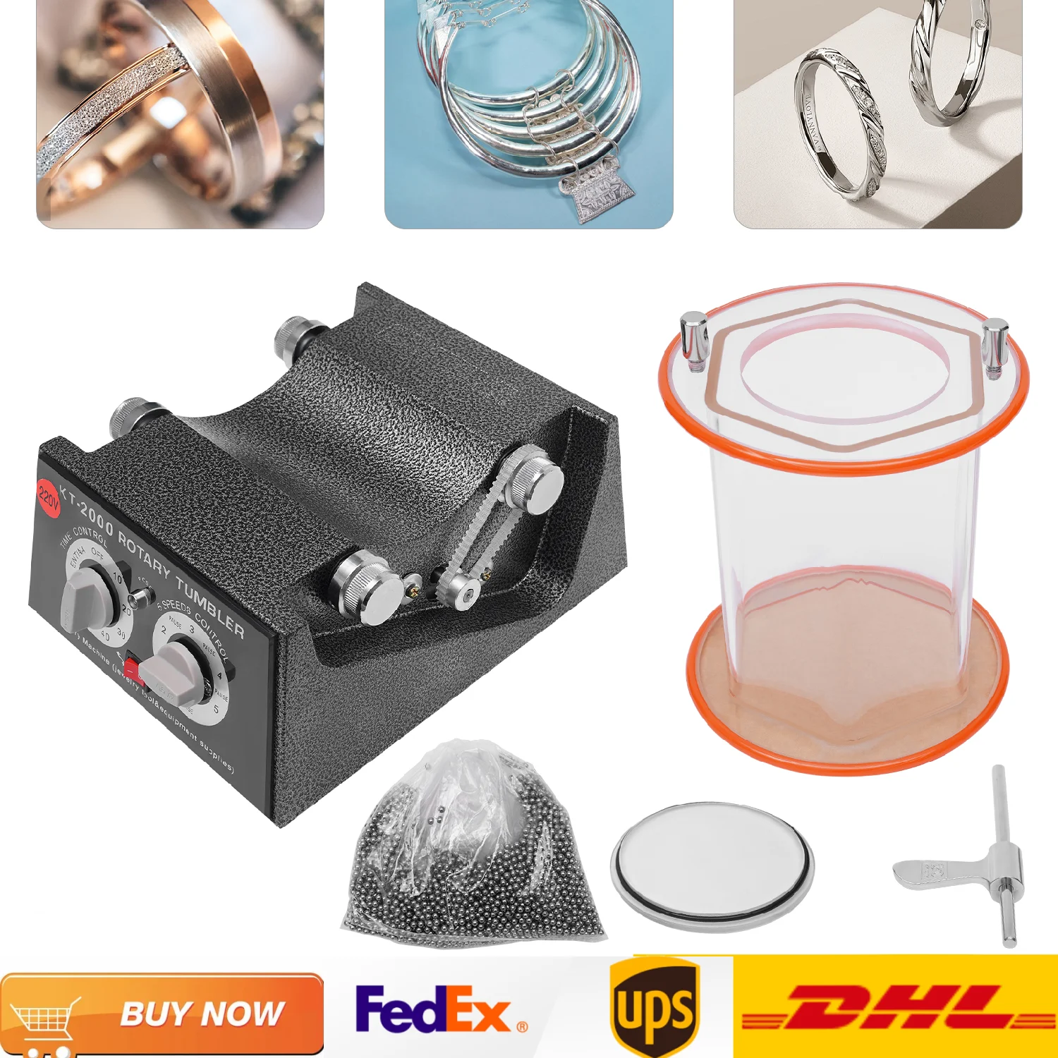 Easy to Use: One-button start, large opening, user-friendly operation panel, large polishing capacity of 11.02 lbs can easily meet the size of your jewelry, you just need to put your jewelry, steel pins, water and special polishing compound (not included) into the polishing bucket, and then press the "on" button!
