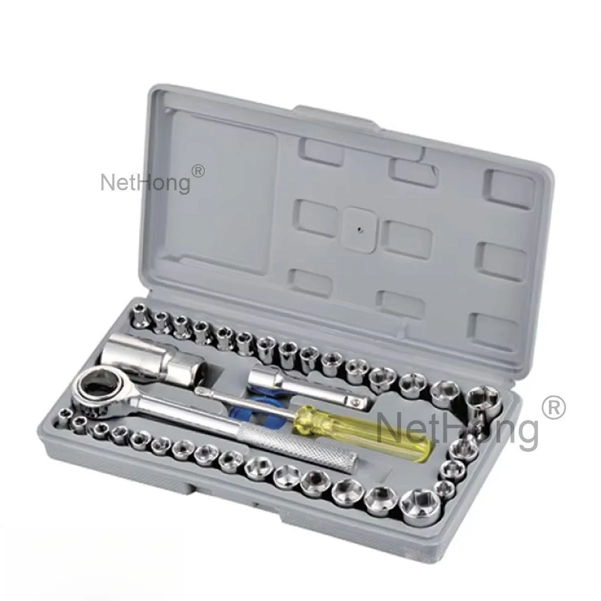40PCS Hardware Tool Set - Socket Ratchet Wrench, Connecting Rod, Durable Tools for Household & Car Repair, DIY Maintenance