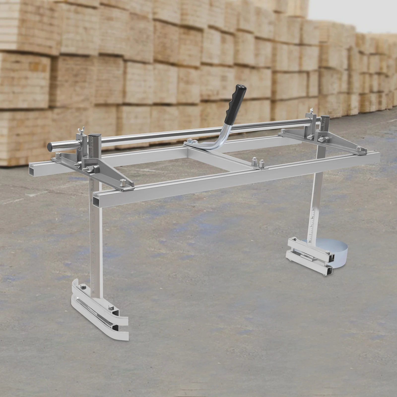 Adjustable Height: You can follow the accurate measuring marks on the uprights to adjust screws on each side, then the height can be adjusted to cut logs and planking from 1/2" to 12"(Thickness) in regular pieces, allowing for easy milling work.