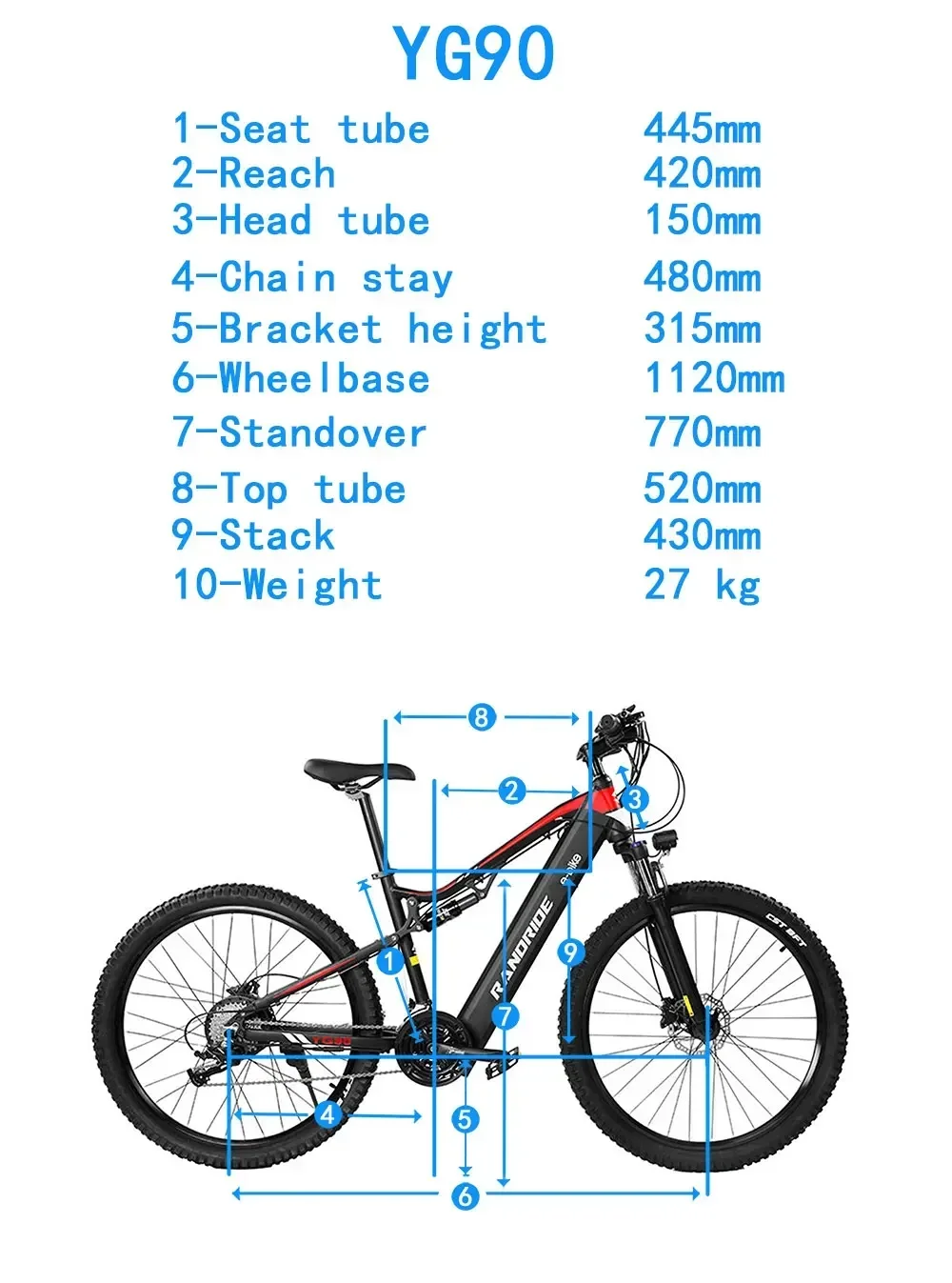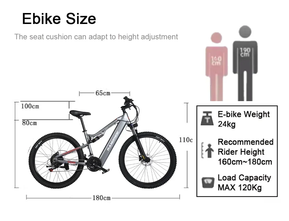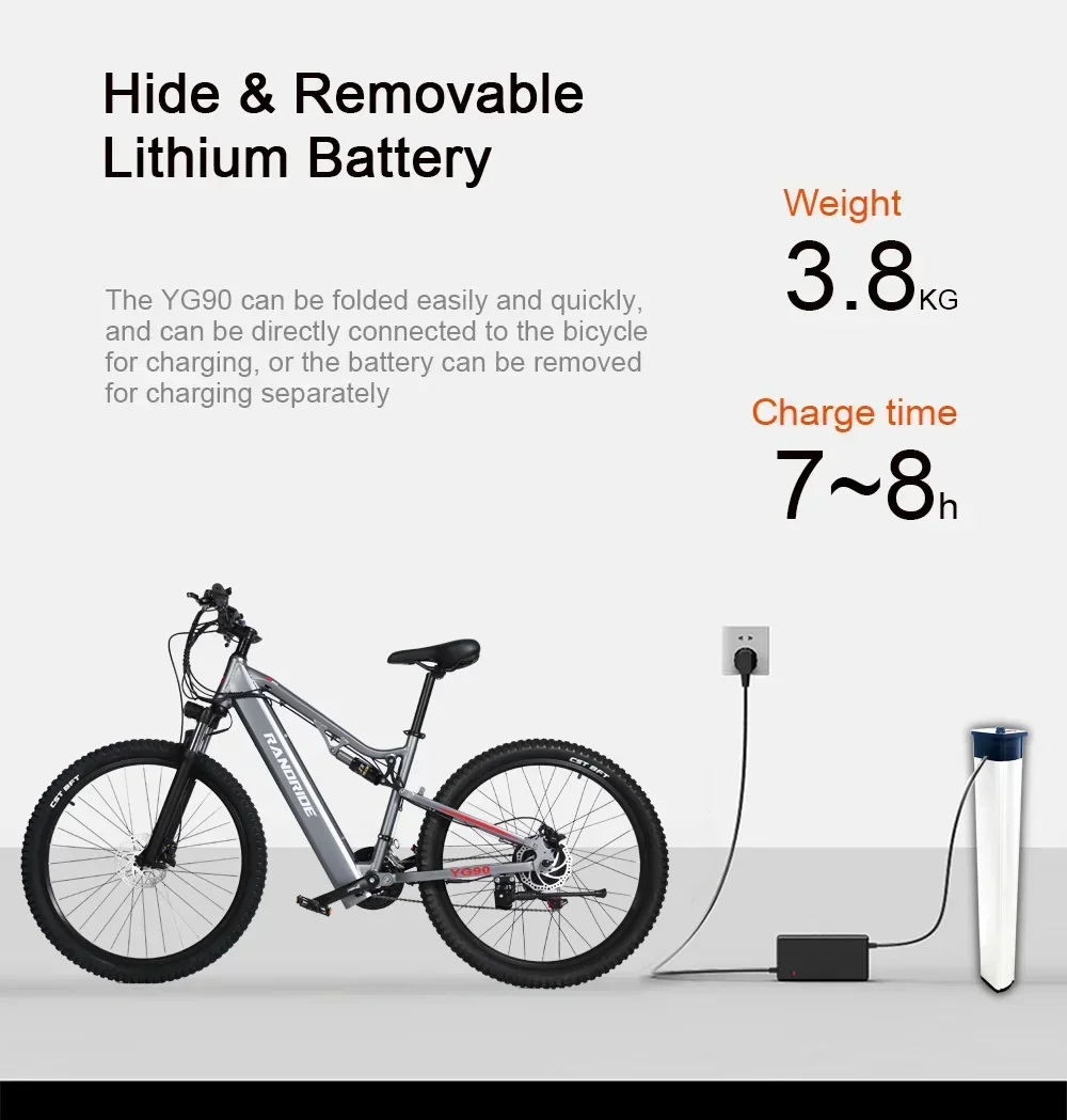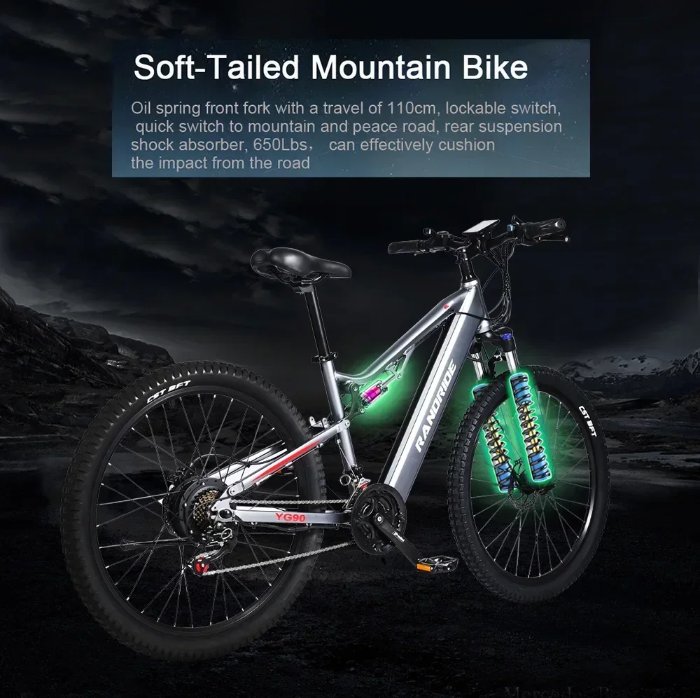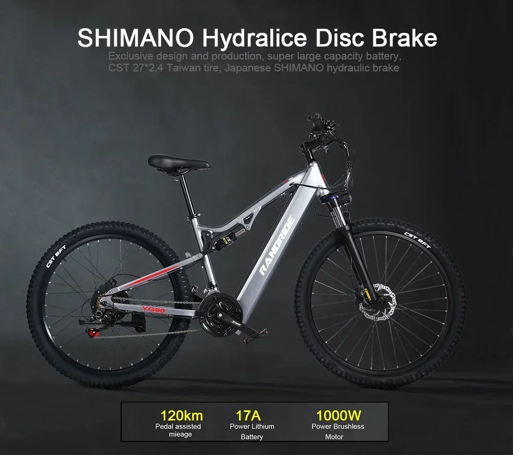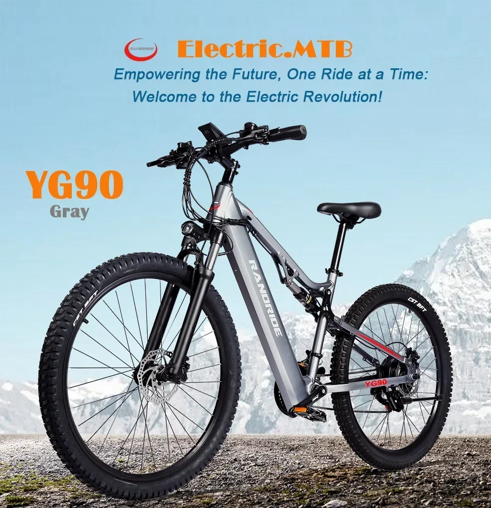 RANDRIDE YG90 Ebike 1000W 48V 17AH 27.5 Inch All terrain Full Suspension Electric Bicycle Adult Mountain Snow Electric Bike