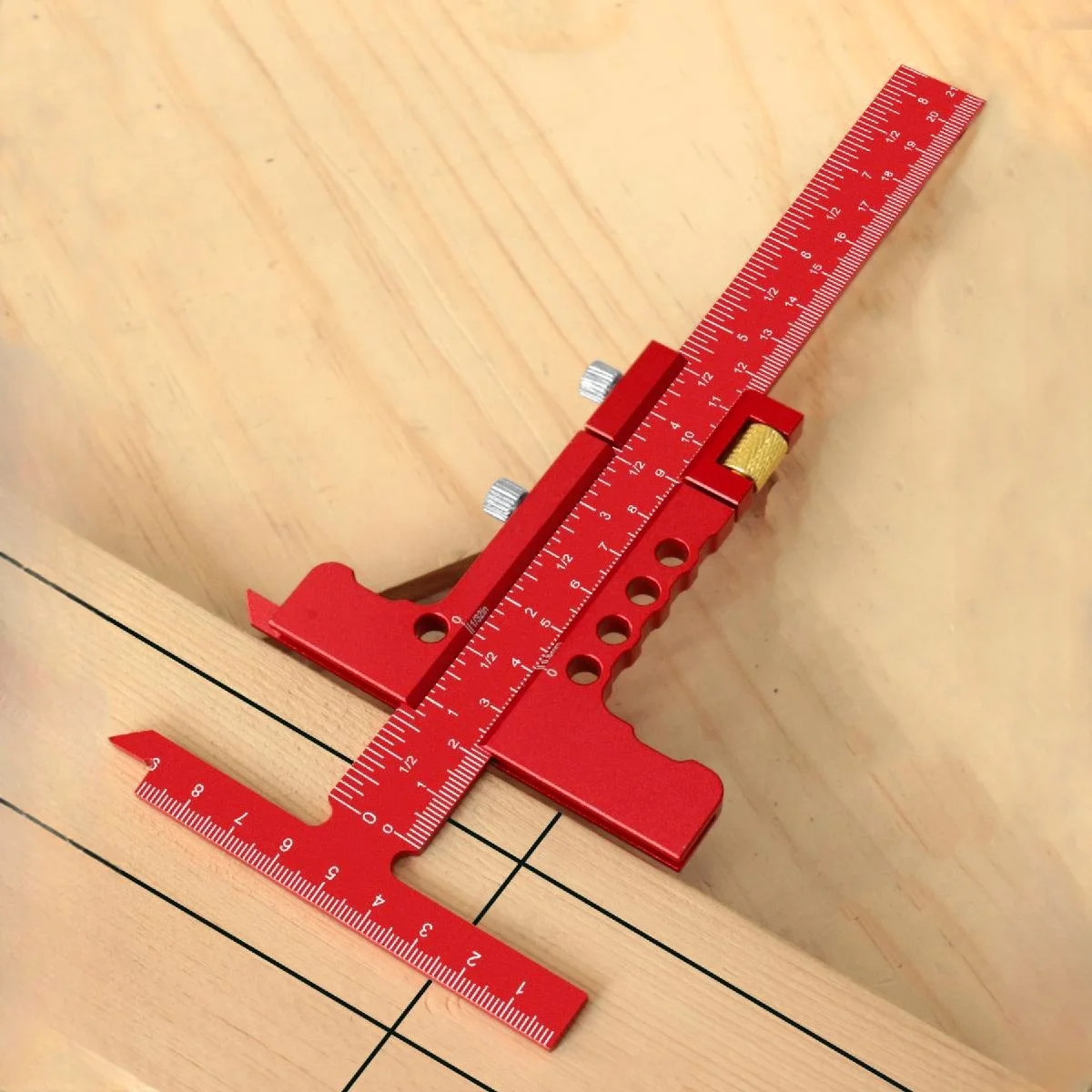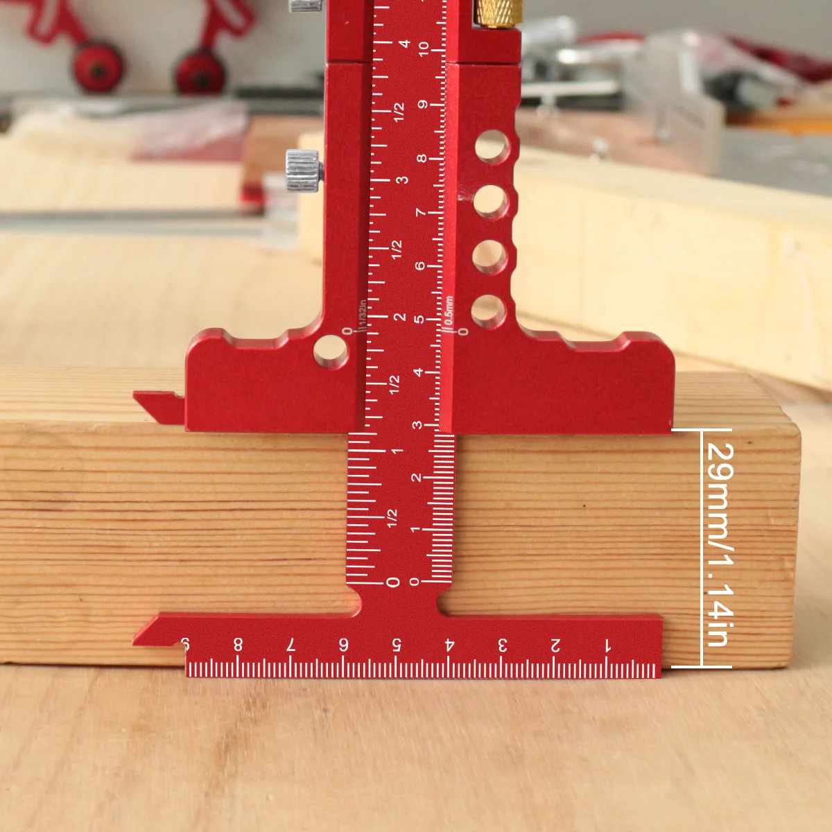 Precision Sliding Edge Ruler - Woodworking Scriber Marking Line Ruler - Adjustable T-Square MM & Inch Framing Ruler Depth Gauge