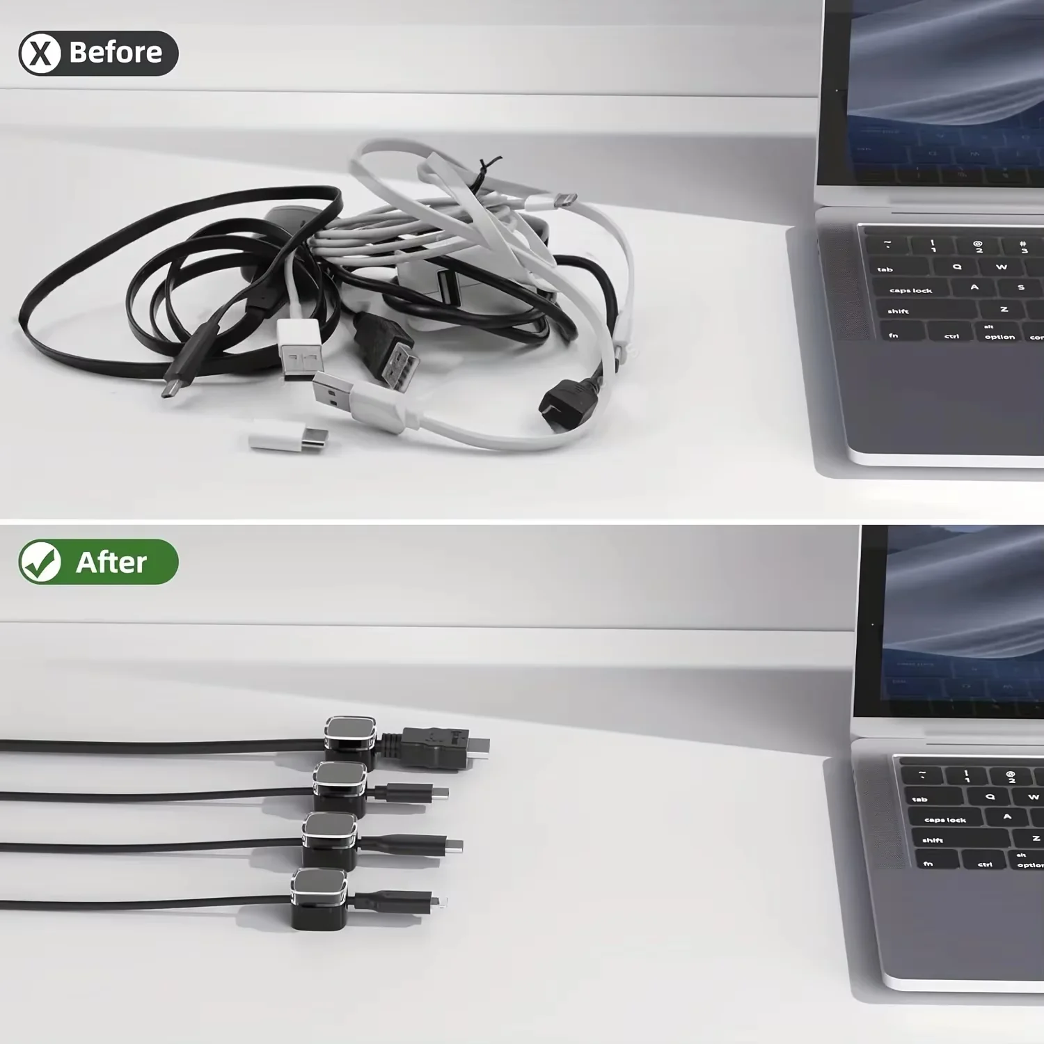 NNBILI 6pcs Magnetic Cable Management Clips Multi-Colored Cord Organizer Desk & Wall Mounted Hooks For Phone Data & Charger