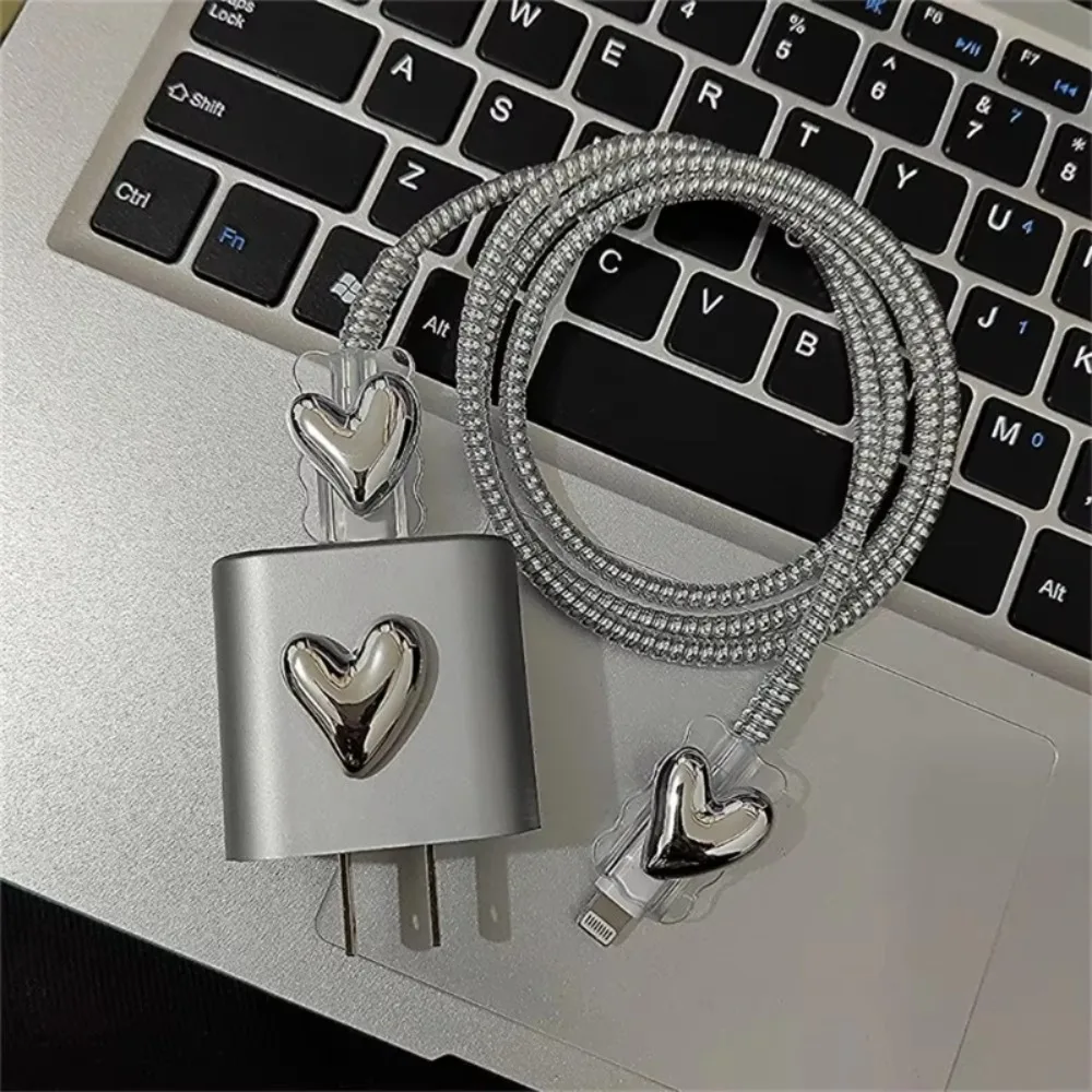 Plating Crooked Silver Love Heart Case for IPhone 15/14/13/12 Pro Max Charger Protective Cover for Iphone 18W/20W Fast Charging